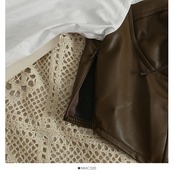 Nomikuma ヒットカラー PU レザーパッチワーク女性ブラウスレースアップウエストクロップトップス 2022 秋長袖シャツ ロング オータム 秋物 kor58871311764