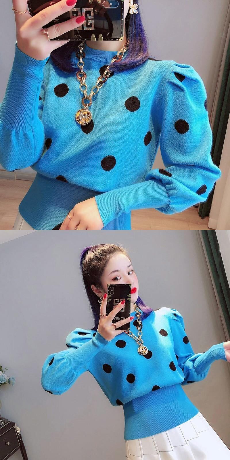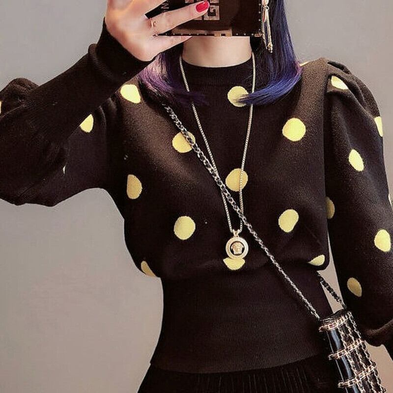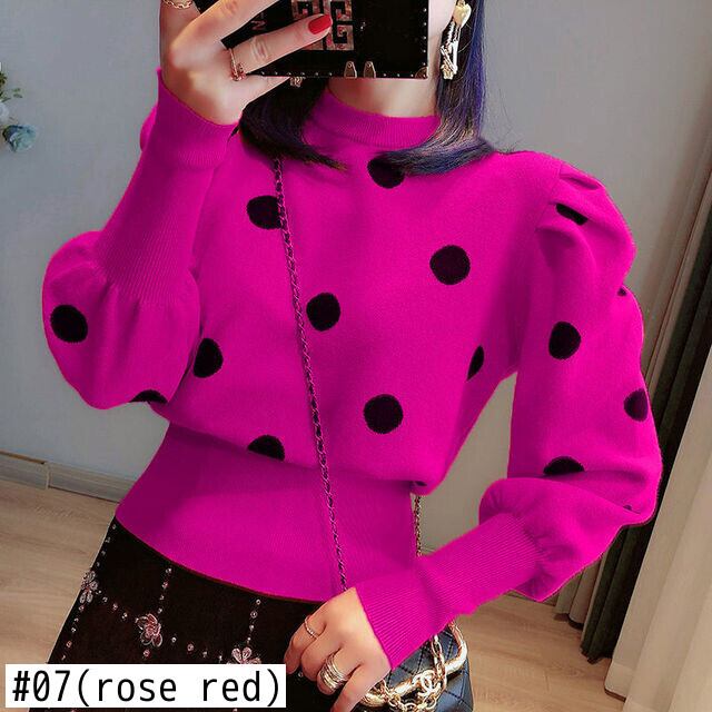 Nomikuma ドットハーフタートルネックセーター女性パフスリーブ 2021 秋冬ニットスリムショートニットトップ 6V748 オータム 秋物 ウィンター 冬物 kor24673595493