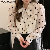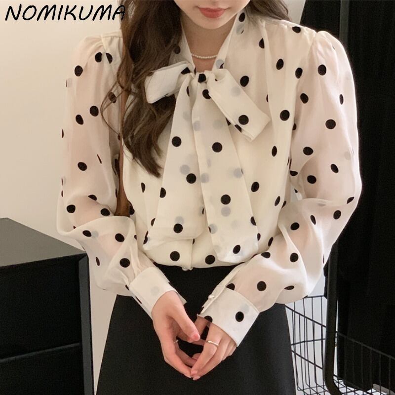 草引水玉ブラウストップス因果パフスリーブ蝶ネクタイ秋の女性シャツ 2022 シック Feminimos リボン オータム 秋物 kor16130841555