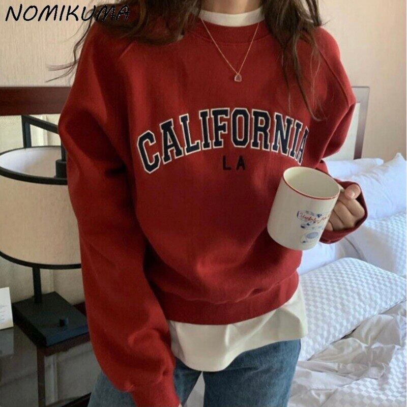 Nomikuma 2022 秋冬フリーススウェット文字刺繍長袖 O ネックジャンパー因果パーカートップ ロング シャツ オータム 秋物 ウィンター 冬物 Oネック kor94759665120