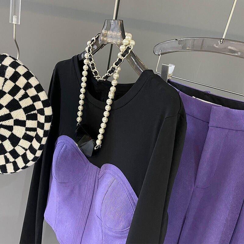 Nomikuma 因果女性スウェットシャツセット 2022 春ショートヒットカラートップス + ウエストワイドレッグロングパンツ衣装 スプリング 春物 ワイドパンツ kor68506320534