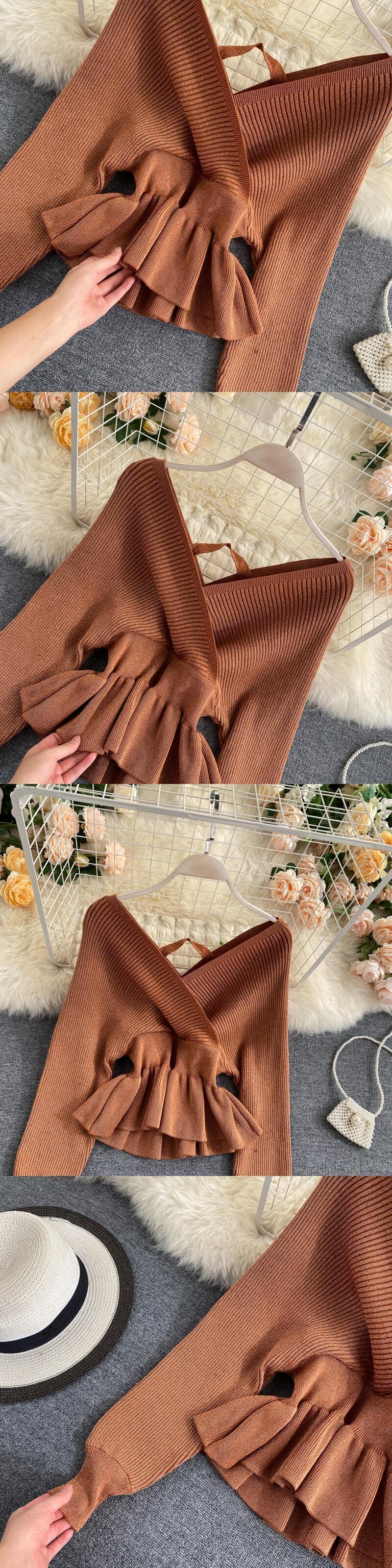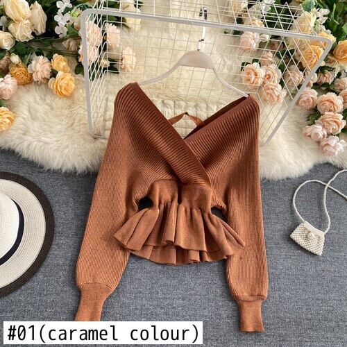 Nomikuma セーター女性春秋の V ネックスリムウエストチュニックフリル裾シックなセーター気質セーター Feminino ラッフル スプリング 春物 オータム 秋物 Vネック kor18518780877