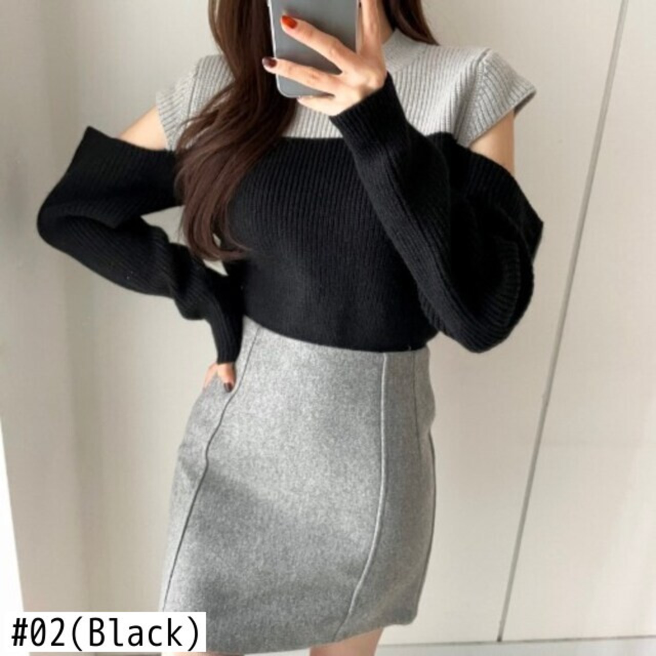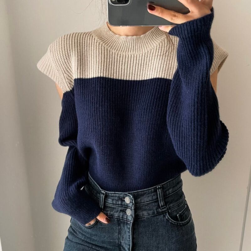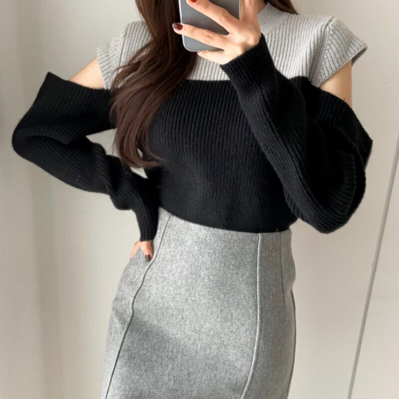 Nomikuma コントラストカラー ストラップレスセーター 因果 長袖 Oネック ニットトップス 2021 秋冬 プルジャンパー 6L600 ロング オータム 秋物 ウィンター 冬物 kor18423773561