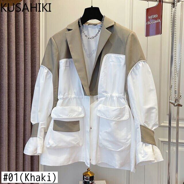 Nomikuma 女性 2022 春秋のコート因果バットウィングスリーブターンダウン襟生き抜くヒットカラースーツパッチワークジャケット スプリング 春物 オータム 秋物 kor5089073191