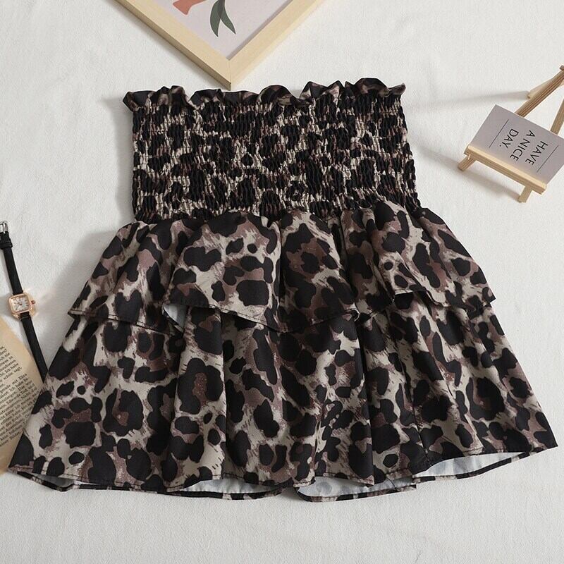 Nomikuma セクシーなヒョウスカートレディース 2022 夏ボトムス Ealstic ウエスト因果 A ラインミニスカート段 Faldas デ サマー 夏物 Aライン kor27659141480
