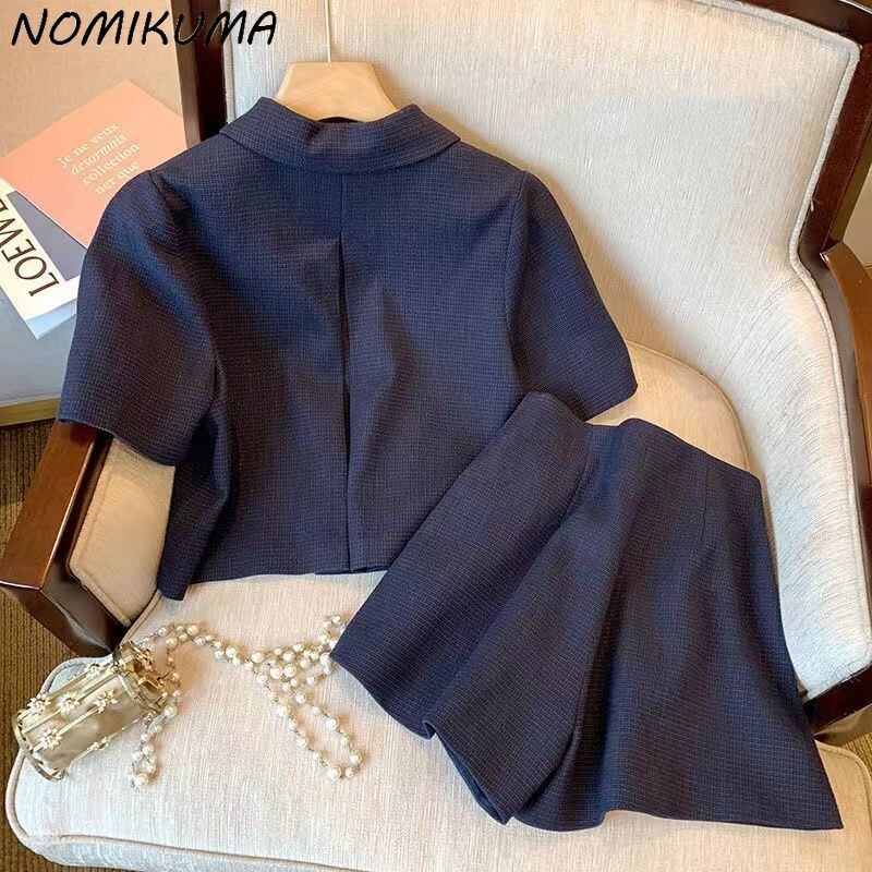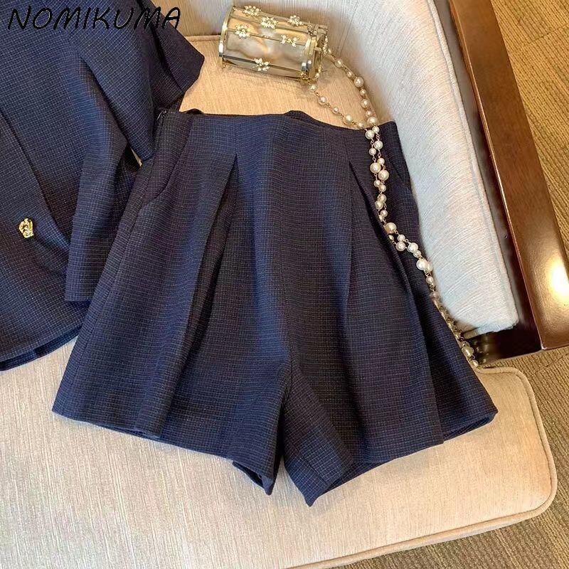 Nomikuma 夏女性スーツ 2 ピース服半袖 Doubel ブレスト トップ + ウエスト ショーツ セット ショート ハーフスリーブ サマー 夏物 ブルマー kor58033658966