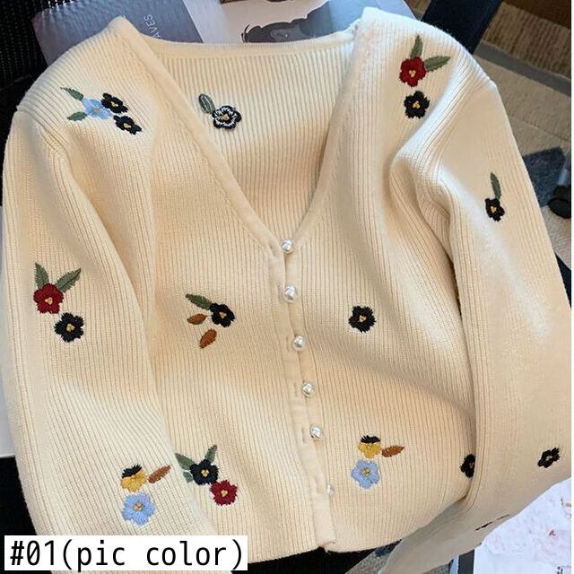 Nomikuma シックな花刺繍長袖ニットカーディガン女性 2022 秋のセーターコート因果 V ネックニット ロング オータム 秋物 花柄 Vネック kor19003539935