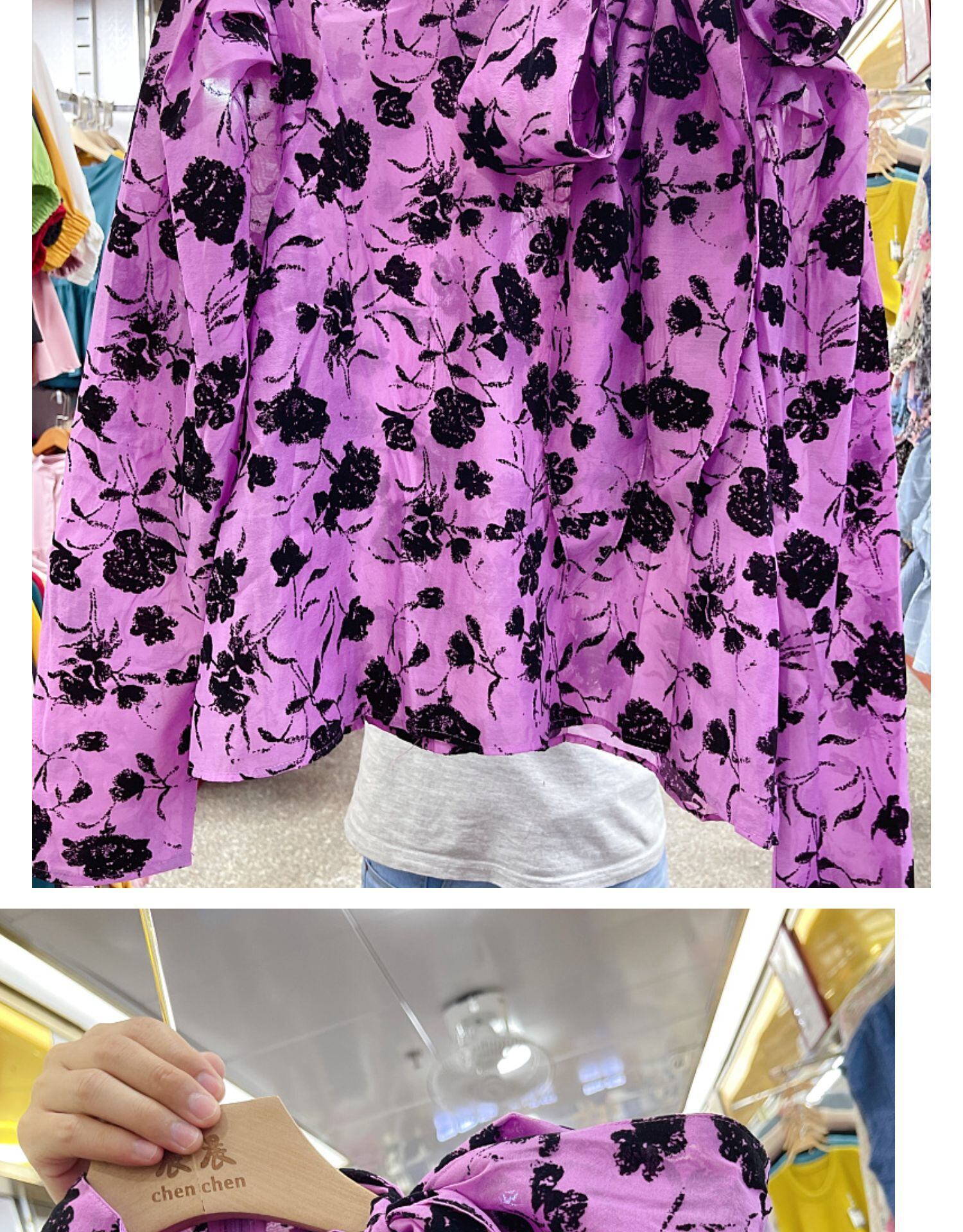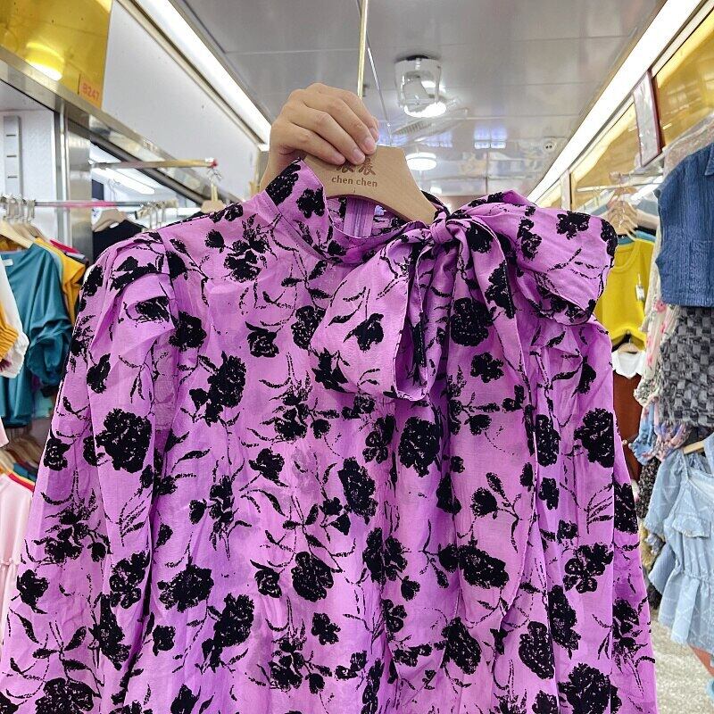Nomikuma 2022 秋花柄シフォンブラウス弓包帯スタンドネック女性シャツ因果パフスリーブトップ リボン オータム 秋物 kor3290141249