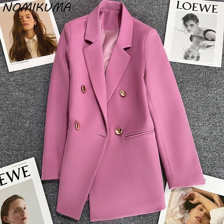 ノミクマ因果ダブルブレスト長袖ブレザーコートターンダウンカラースーツジャケット2022秋ブレザー ロング オータム 秋物 kor63322670533