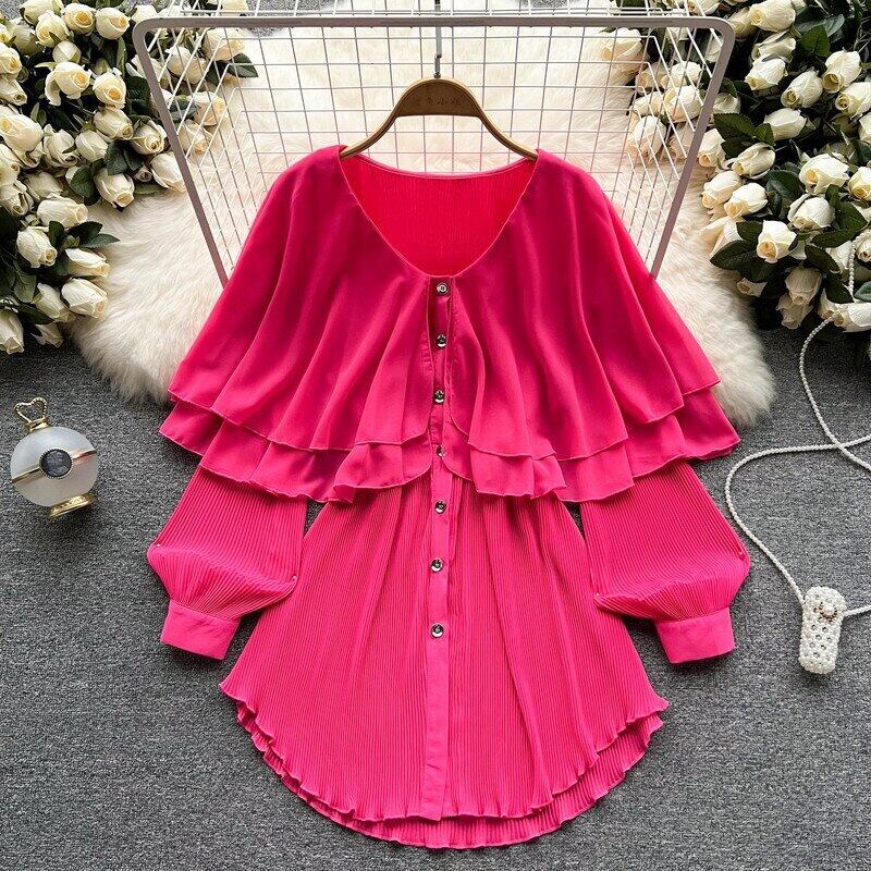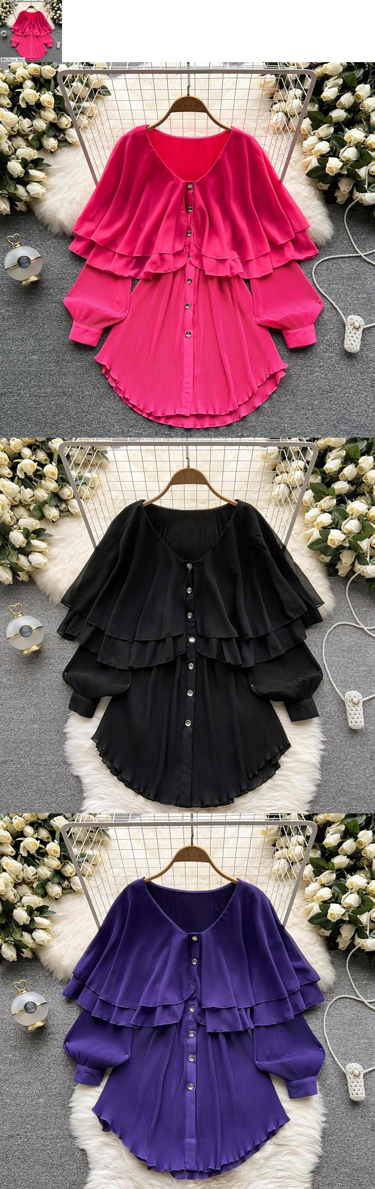 Nomikuma Folds フリル シフォン ブラウス トップス カジュアル パフ スリーブ V ネック レディース トップ 2022 夏シャツ サマー 夏物 Vネック kor43620942201