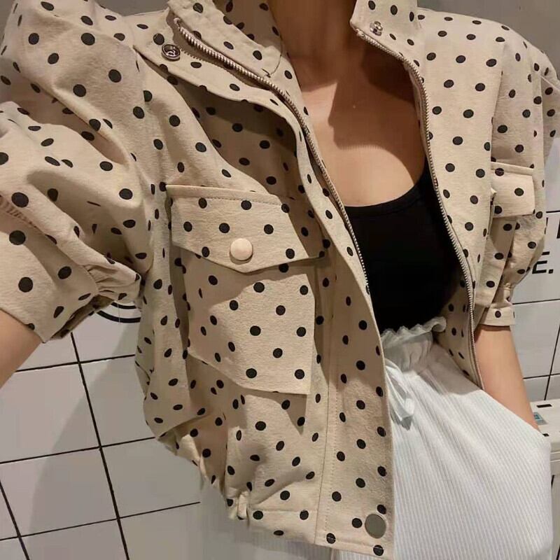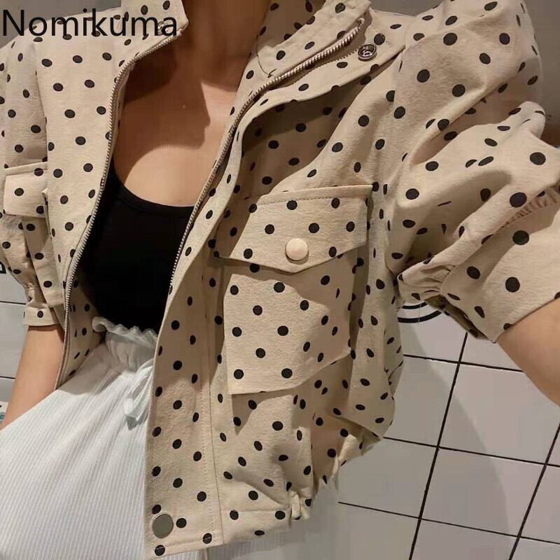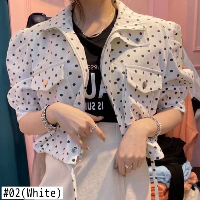 ノミクマシックドット女性ジャケット因果パフスリーブターンダウンカラーコート 2021 春夏ショートアウター 6H230 スプリング 春物 サマー 夏物 kor76226989712
