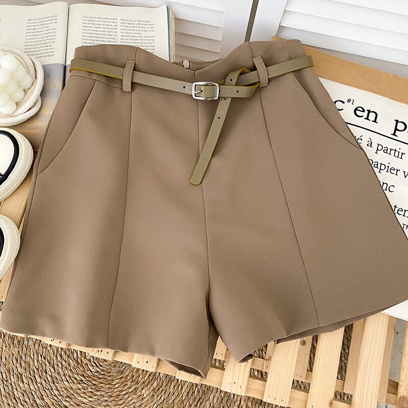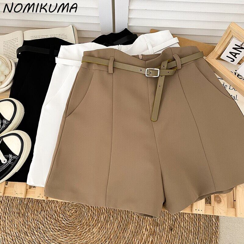 ノミクマ イレギュラーウエスト スーツショーツ ベルト付き 2022年秋 ボトム 無地 ワイドレッグ ショート Feminimos オータム 秋物 ハーネス ブルマー ワイドパンツ ソリッドカラー kor99326289264