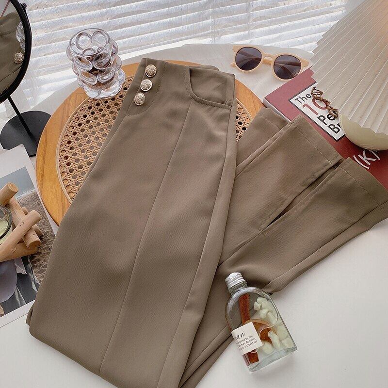 Nomikuma ウエストフレアパンツ レディース 2022 春夏 長ズボン 因果 無地 スプリット ロング スプリング 春物 サマー 夏物 ソリッドカラー kor46522859042