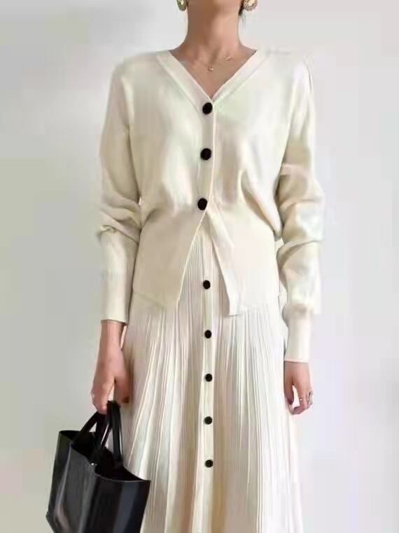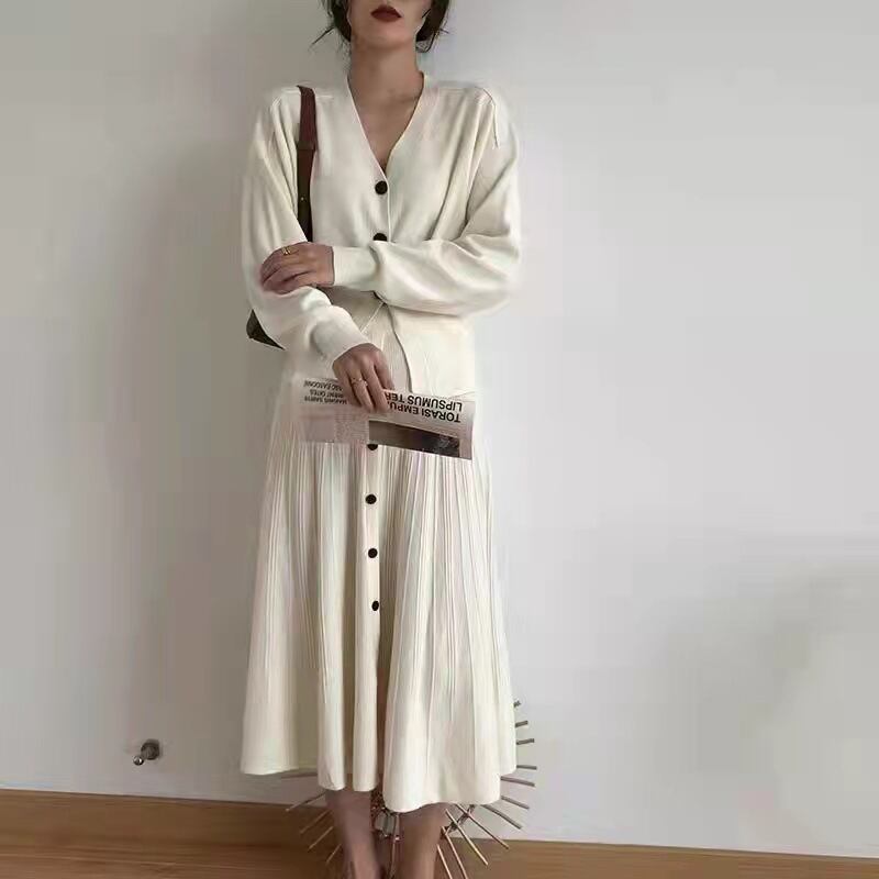Nomikuma ニットセット女性 2022 秋冬長袖 V ネックセーターコート + ウエスト因果 A ラインスカート二枚スーツ ロング オータム 秋物 ウィンター 冬物 Vネック Aライン kor89776548044