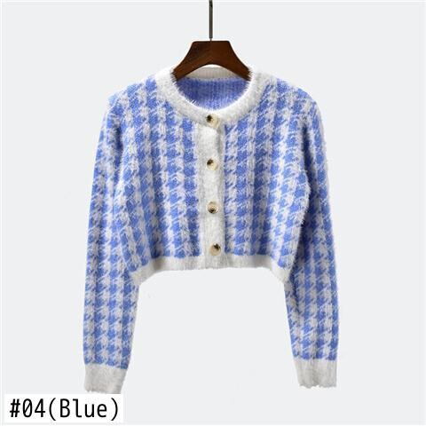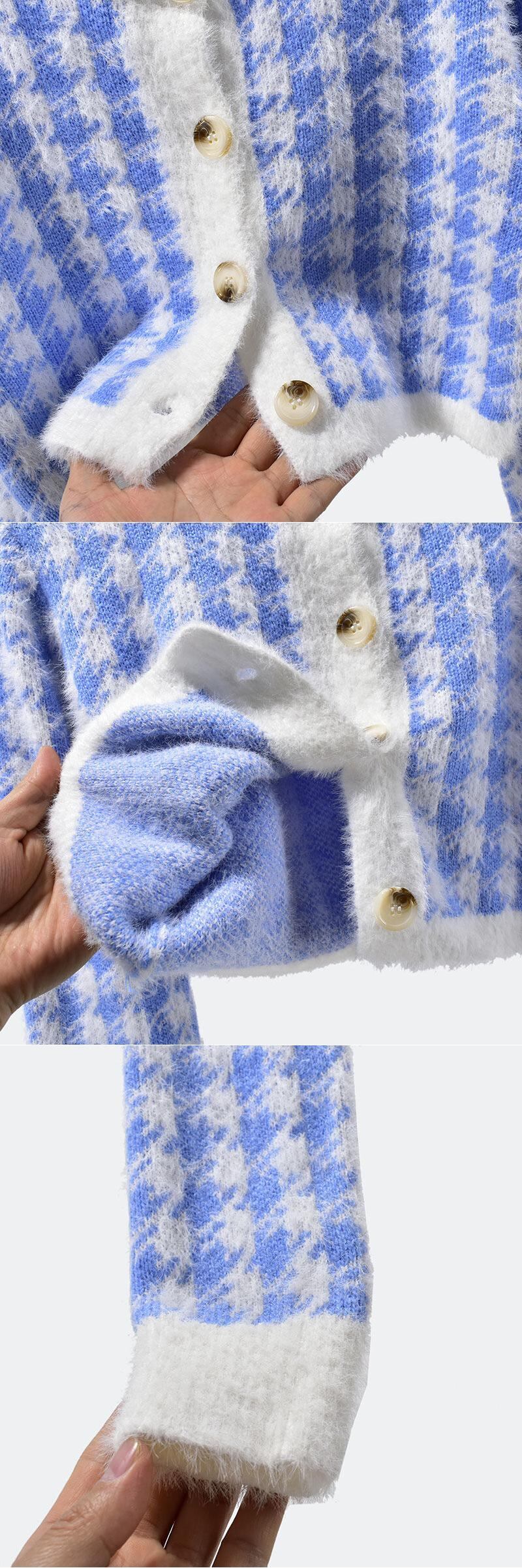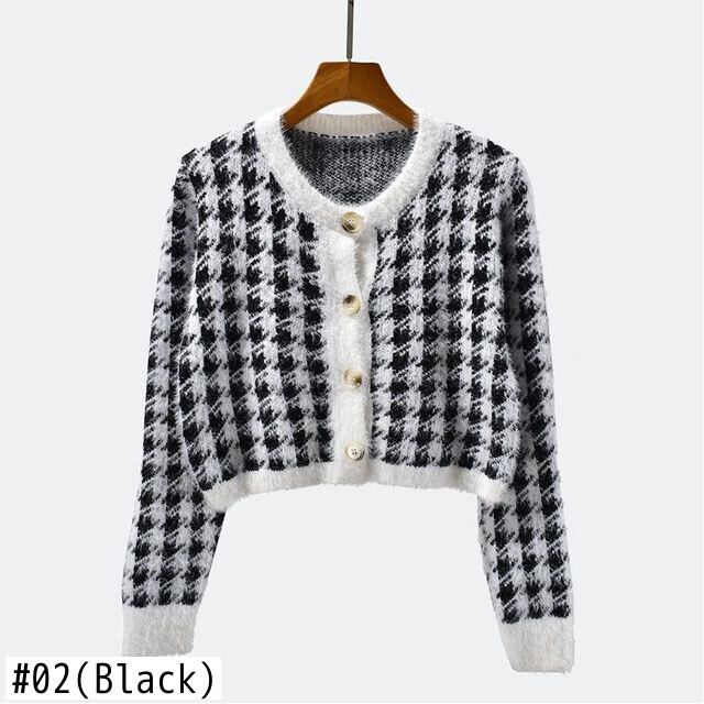 Nomikuma 2022秋 フェイクミンク カシミア カーディガン コート コントラストカラー チェック柄 ニットセーター カジュアル 長袖 ショートニット ロング オータム 秋物 ファー kor71722470909
