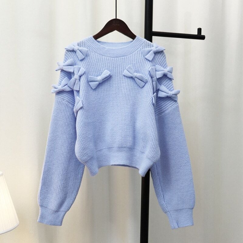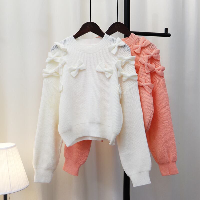Nomikuma シックな 3D ちょう結び甘いニットセーター 2022 秋冬プル因果長袖 O ネックプルオーバーニットトップス ロング リボン 大人ガーリー スウィート キュート カジュアル オータム 秋物 ウィンター 冬物 Oネック kor25149034597