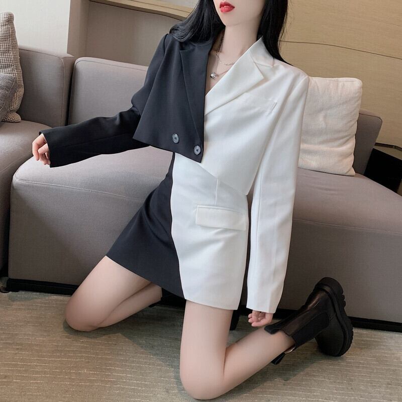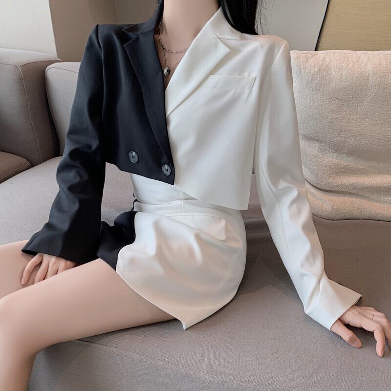 Nomikuma コントラストカラーブレザー 2 個セット 2022 ショートブレザーコート + ウエスト A ラインミニスカートの女性衣装 Aライン kor94570609154