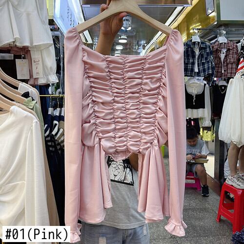 Nomikuma 2022 秋の女性ブラウススクエアカラーセクシーなひだシャツスリム不規則なフリルトップス オータム 秋物 スクウェア kor23449464724