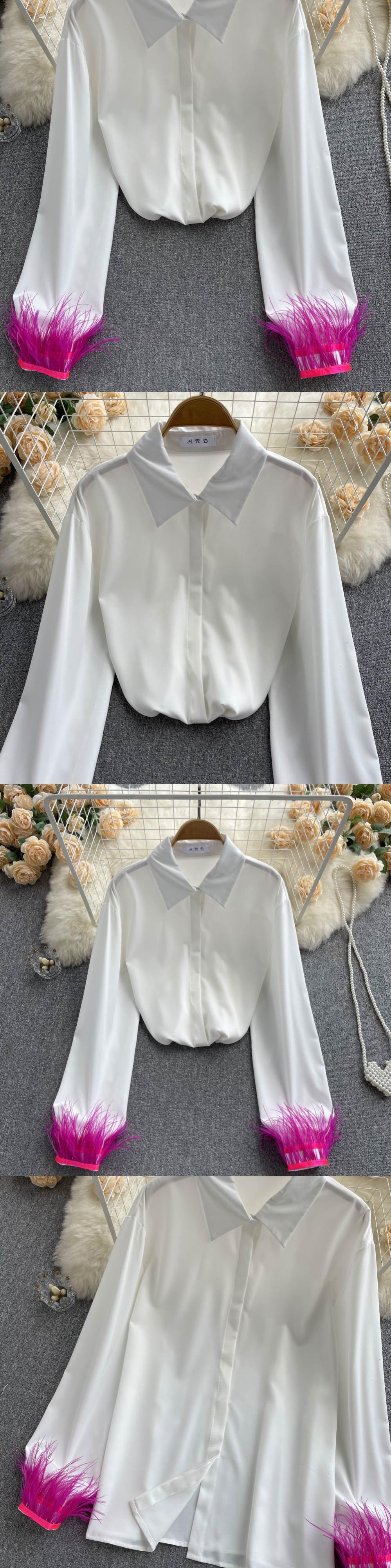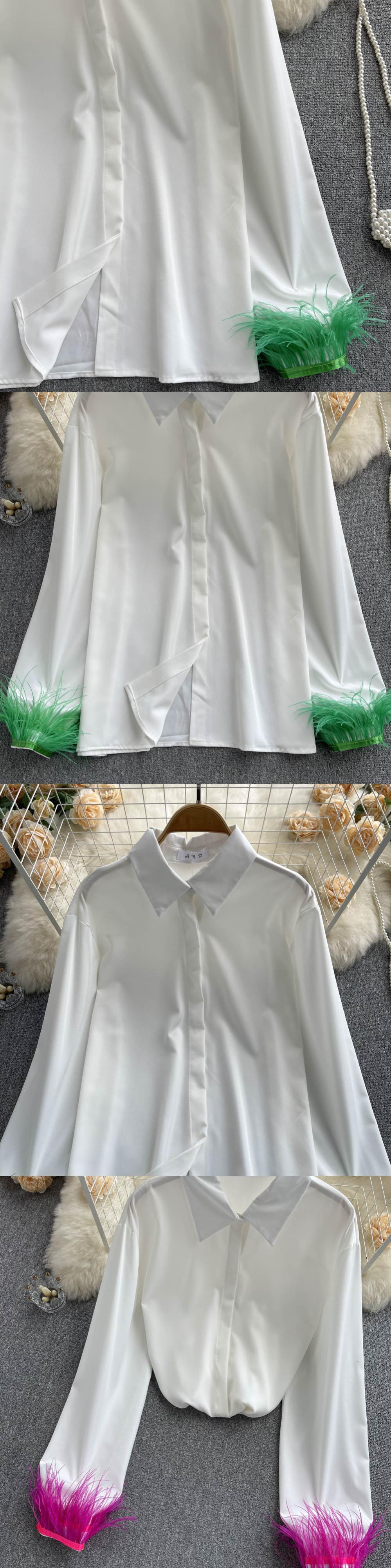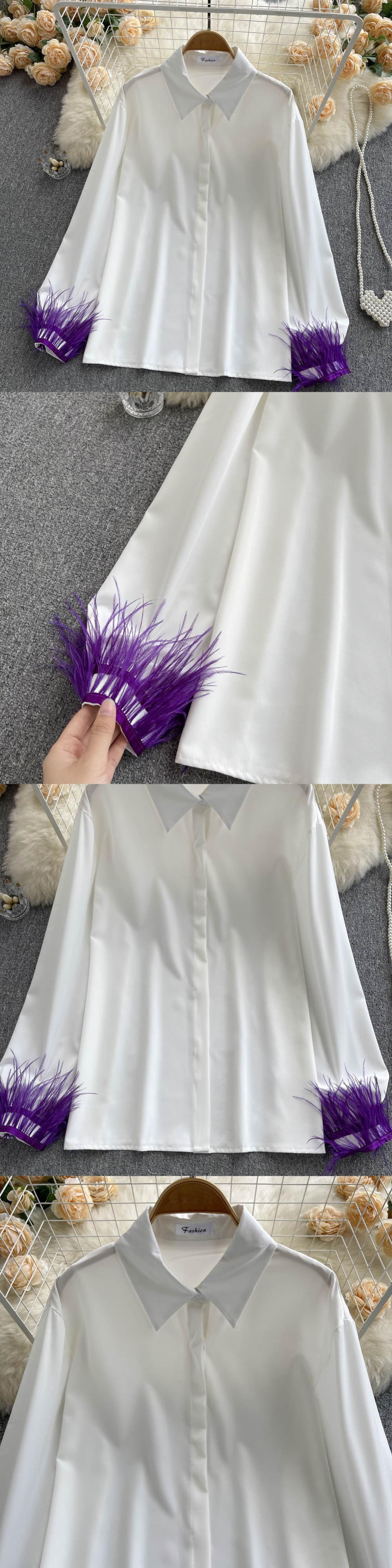 ノミクマ ヒットカラー フェザー パッチワーク 長袖 ブラウス シャツ レディース トップス 2022年秋デ ロング オータム 秋物 kor19438302049