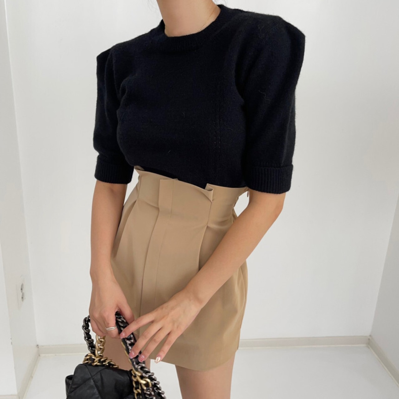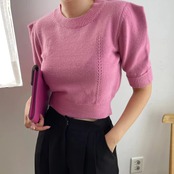 KUSAHIKI 秋冬 プルシック パフスリーブ Oネック プルオーバー ニット カジュアル 無地 ニット トップス 2022 オータム 秋物 ウィンター 冬物 ソリッドカラー kor79656901936