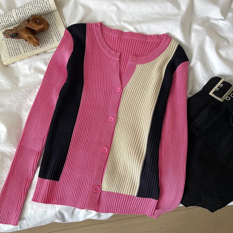 Nomikuma ヒットカラーパッチワークニット 2022 秋の女性シングルブレスト O ネック長袖ニットセーターカーディガン ロング オータム 秋物 Oネック kor34042634462