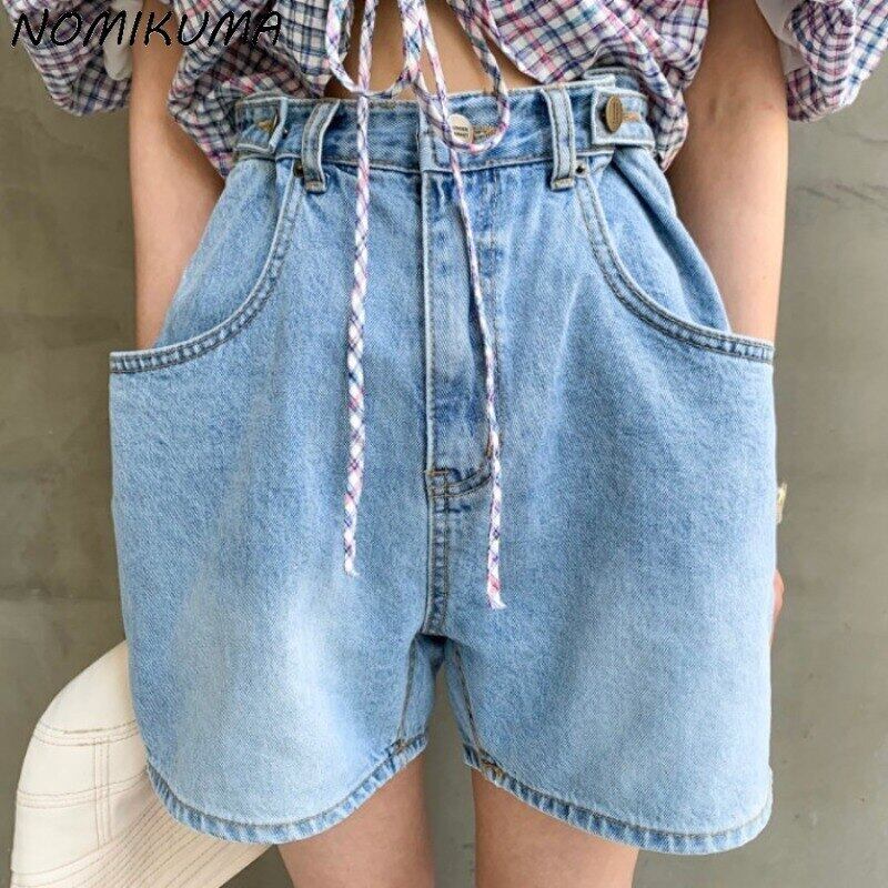 Nomikuma ウエストデミンショーツ レディース 夏 因果ポケット ワイドレッグジーンズ ショート 2022 ボトムス サマー 夏物 ブルマー ワイドパンツ kor49577743896