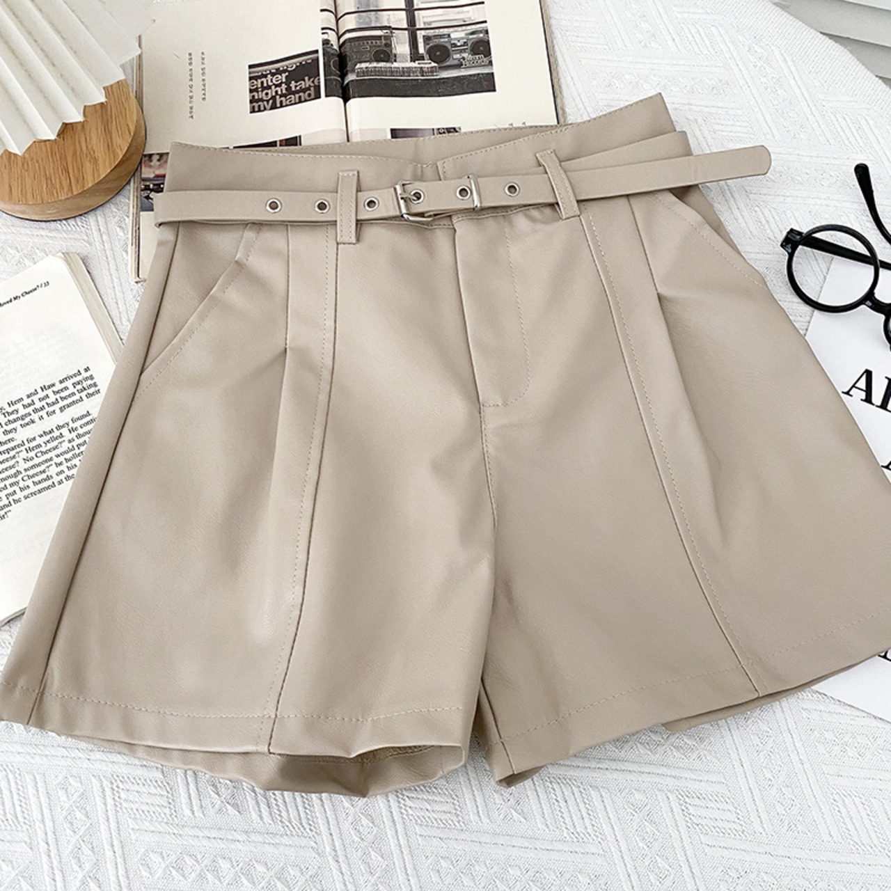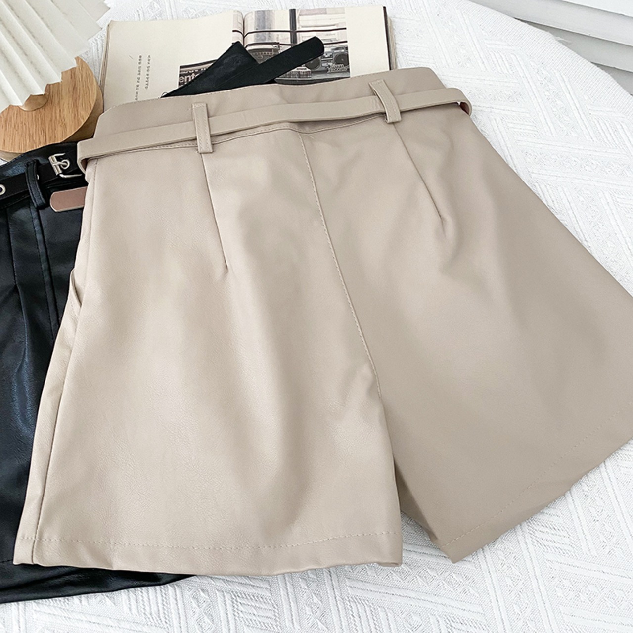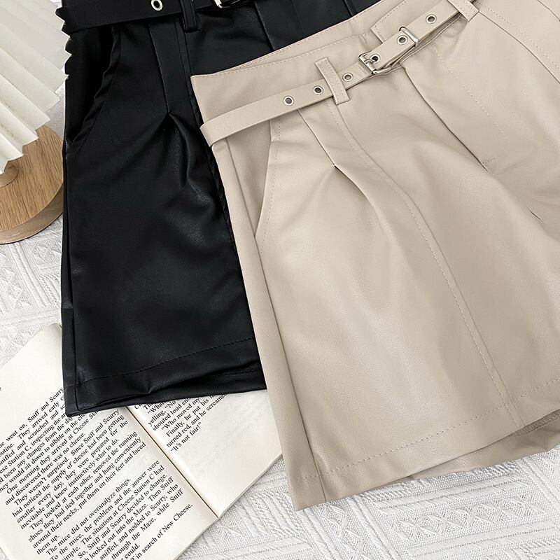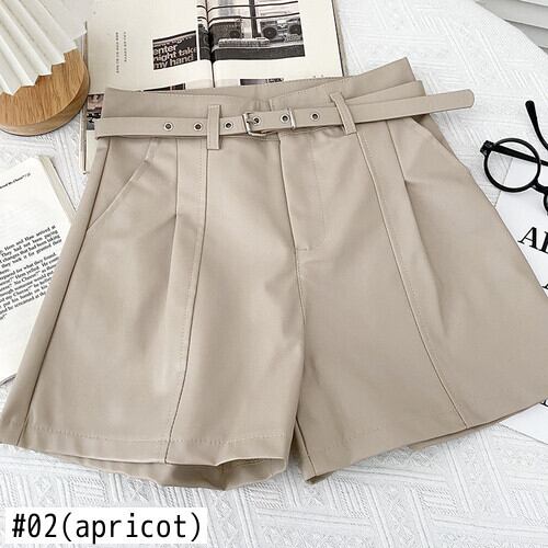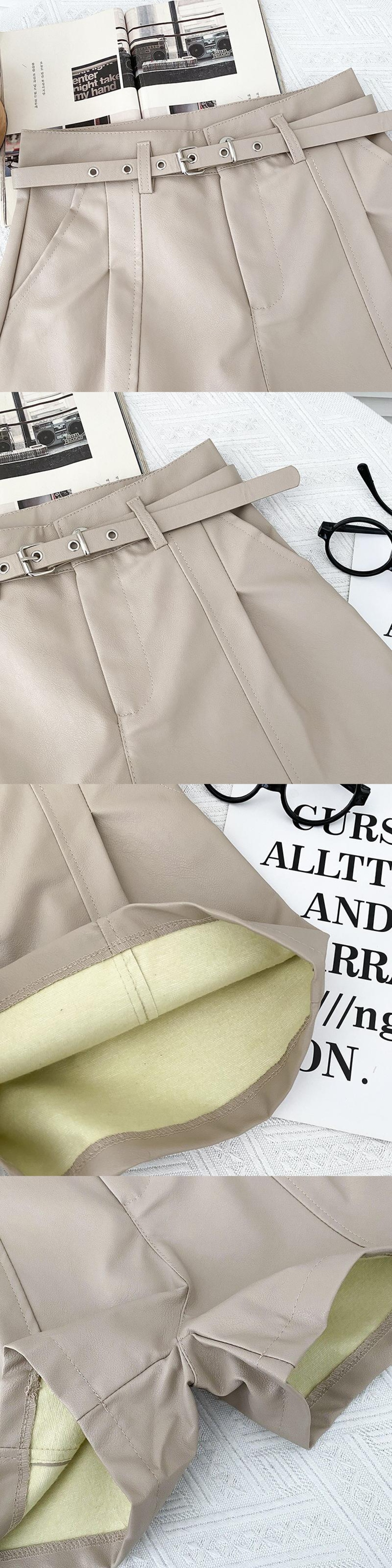 ノミクマ PUレザー ウエストワイドレッグショーツ ベルト付き 2022秋冬 ボトムス 無地 レディース ショートパンツ オータム 秋物 ウィンター 冬物 ハーネス ブルマー ワイドパンツ ソリッドカラー kor41466470618