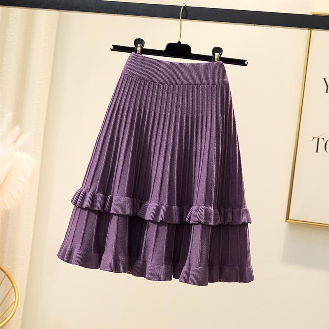 ノミクマ ニット フリル プリーツ ミニスカート 2021秋冬 ボトムス カジュアルウエスト Aライン セータースカート ファルダス 6N455 オータム 秋物 ウィンター 冬物 kor4979072329