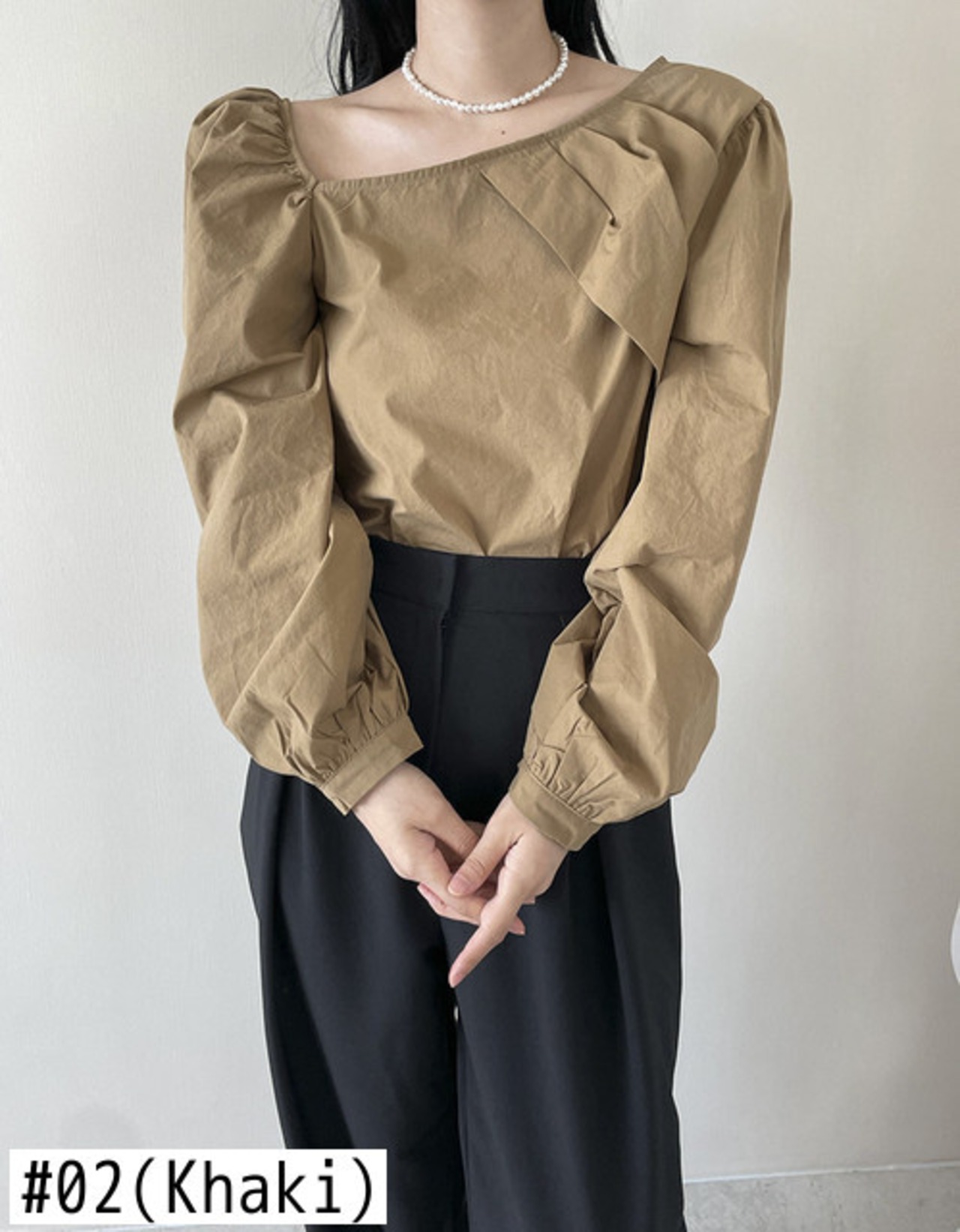Nomikuma ひだ斜め襟ストラップレス女性ブラウストップスパフスリーブプルオーバー 2022 秋冬シャツ オータム 秋物 ウィンター 冬物 kor10345060546