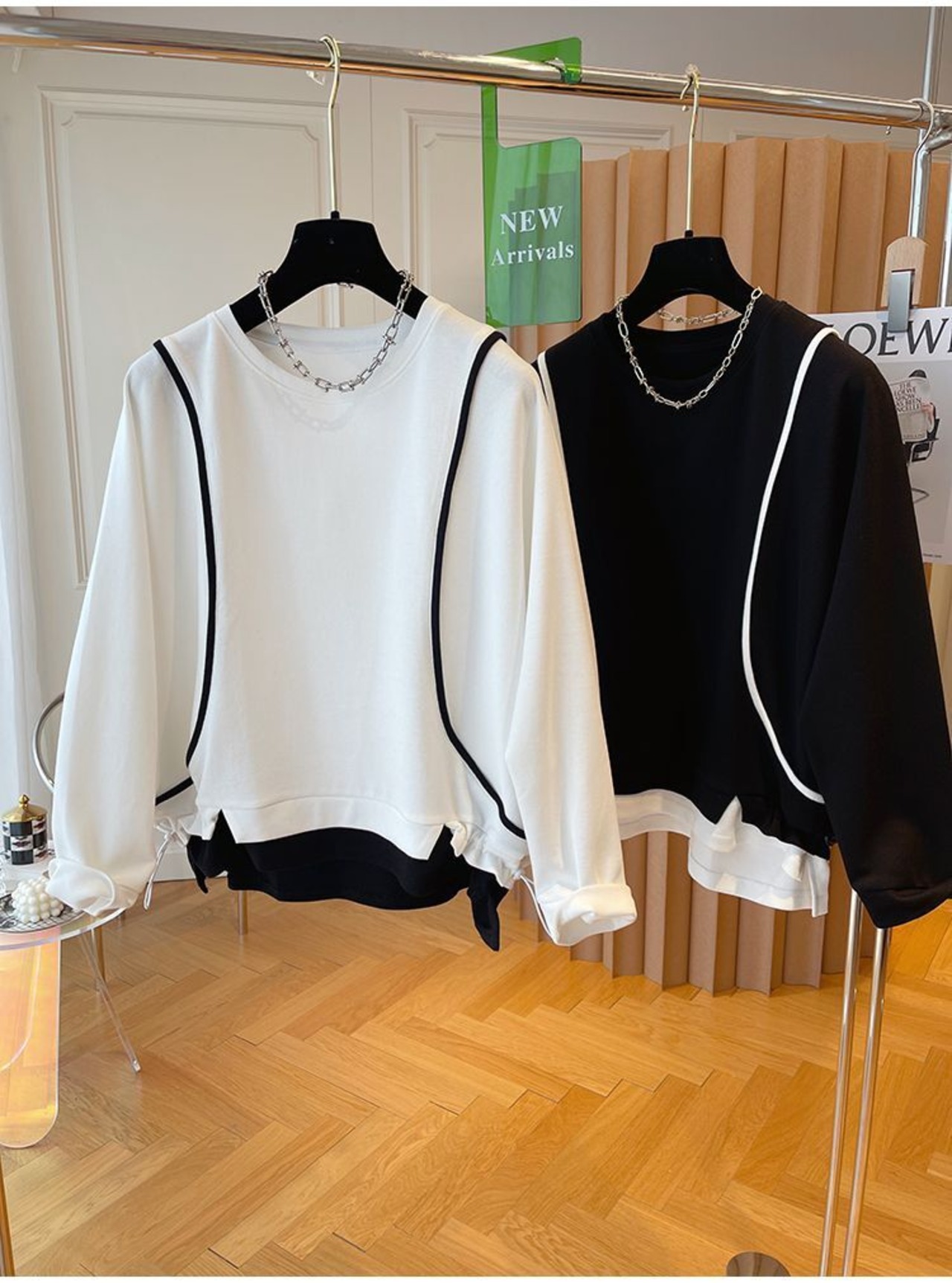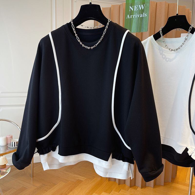 ノミクマ カジュアル ヒットカラー パッチワーク 巾着 フェイクツーピース スウェットシャツ 2022秋 長袖 Oネック プルオーバー トップス ジャンパー ロング オータム 秋物 kor30836584711