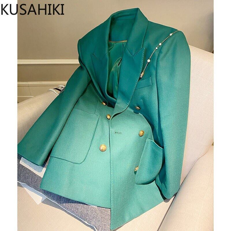 KUSAHIKI 秋のブレザー Blazer De Moda 2022 ダブルブレスト長袖ターンダウンカラースーツジャケット ロング オータム 秋物 kor65953148791