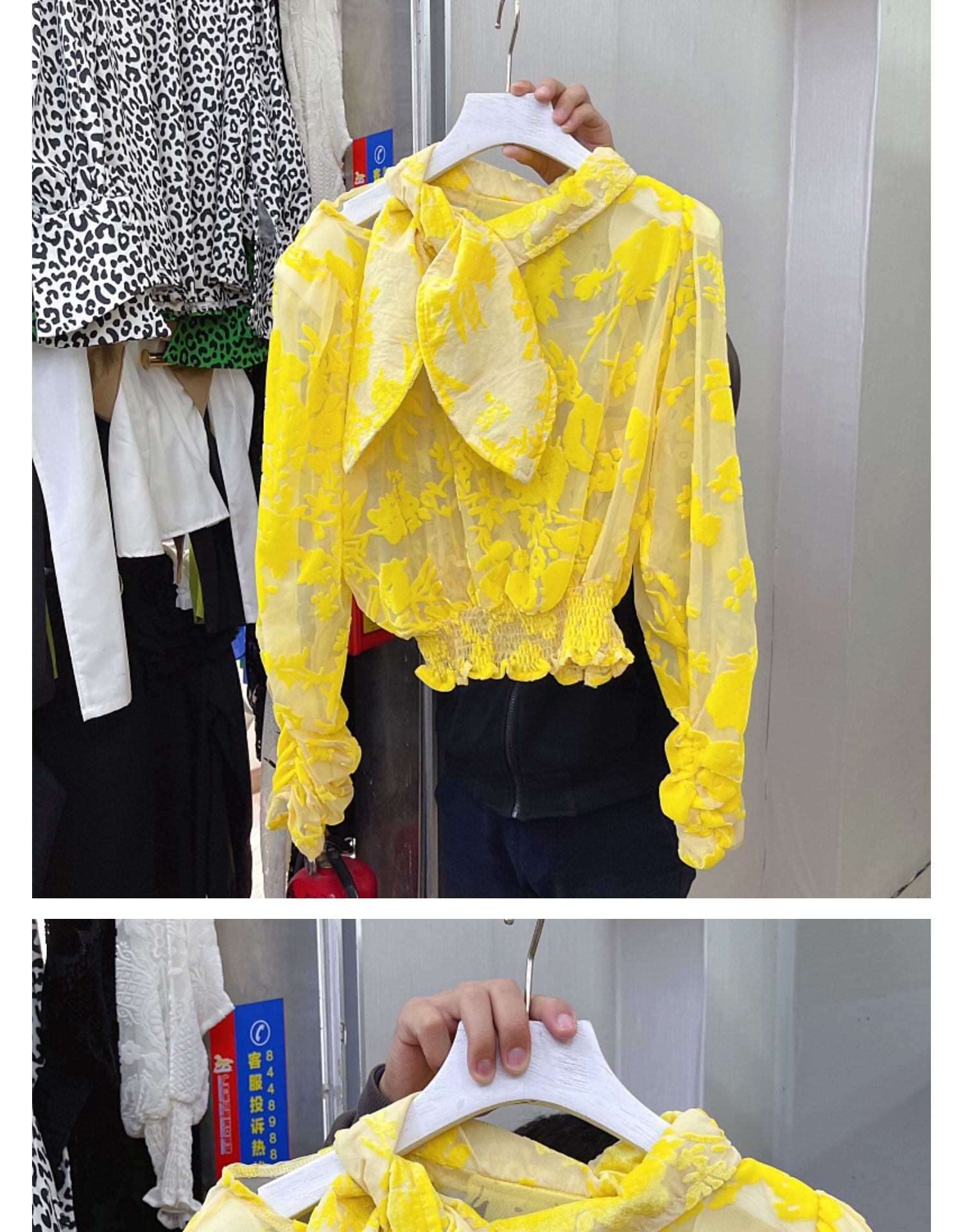 Nomikuma セクシーなフロッキング透視レースシャツ蝶ネクタイ O ネックの女性は 2022 長袖 ロング リボン Oネック kor71631836478