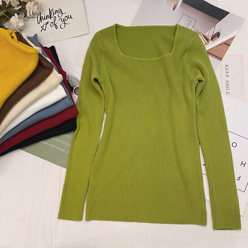 Nomikuma ストレッチスリム女性ニットウェア 2022 秋冬ベーシックセーター長袖スクエアカラー無地ニットトップス ロング オータム 秋物 ウィンター 冬物 ソリッドカラー スクウェア kor35653822937
