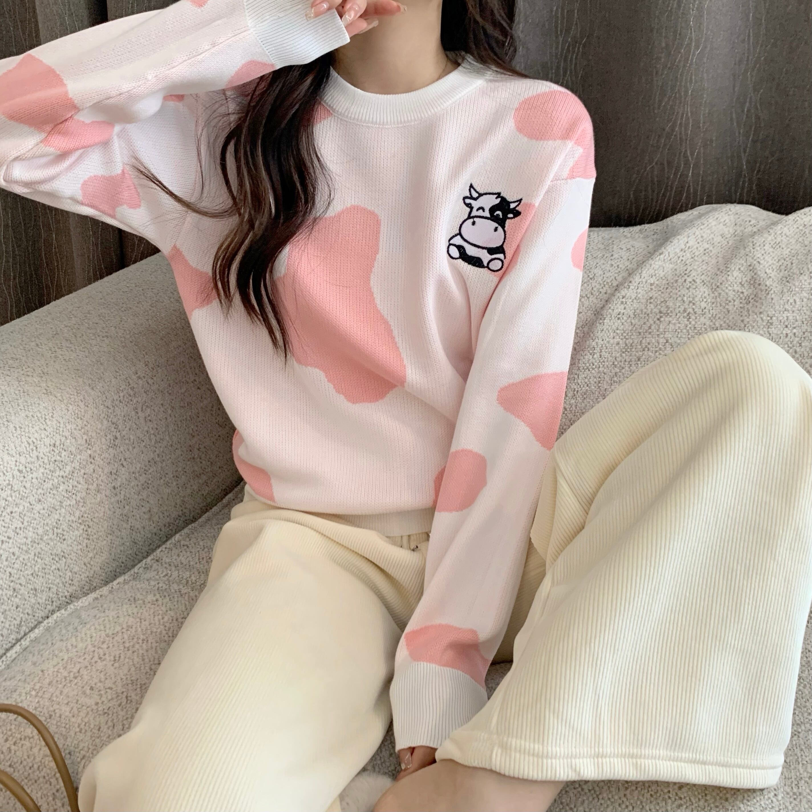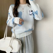Nomikuma スタイル甘い印刷セーター長袖 O ネックプルオーバーニット 2022 秋冬女性ニットセーター ロング 大人ガーリー スウィート キュート カジュアル オータム 秋物 ウィンター 冬物 Oネック kor55529445015