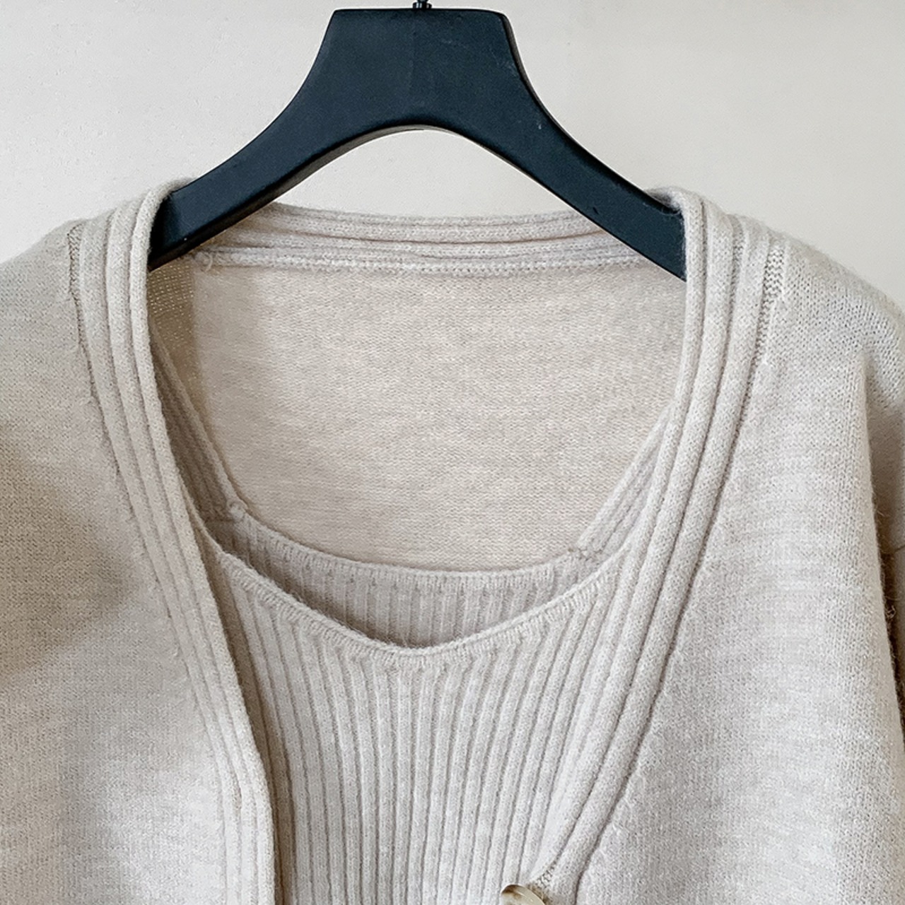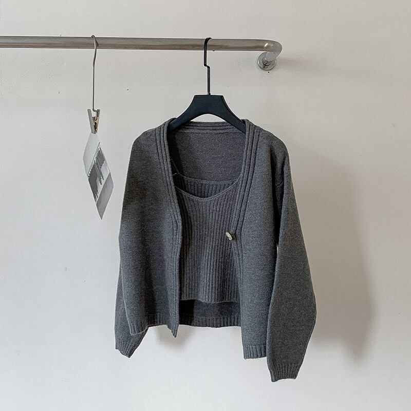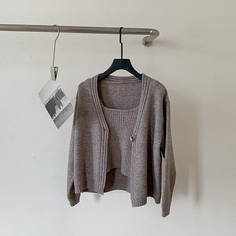 Nomikuma 因果無地セーターカーディガンコート 2022 秋の女性シングルボタンロングスリーブニット + ベーシックスリングベスト オータム 秋物 ソリッドカラー kor18408117351