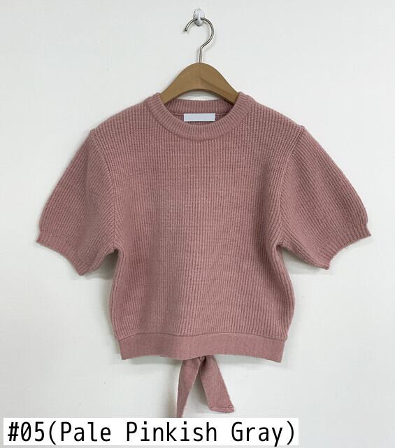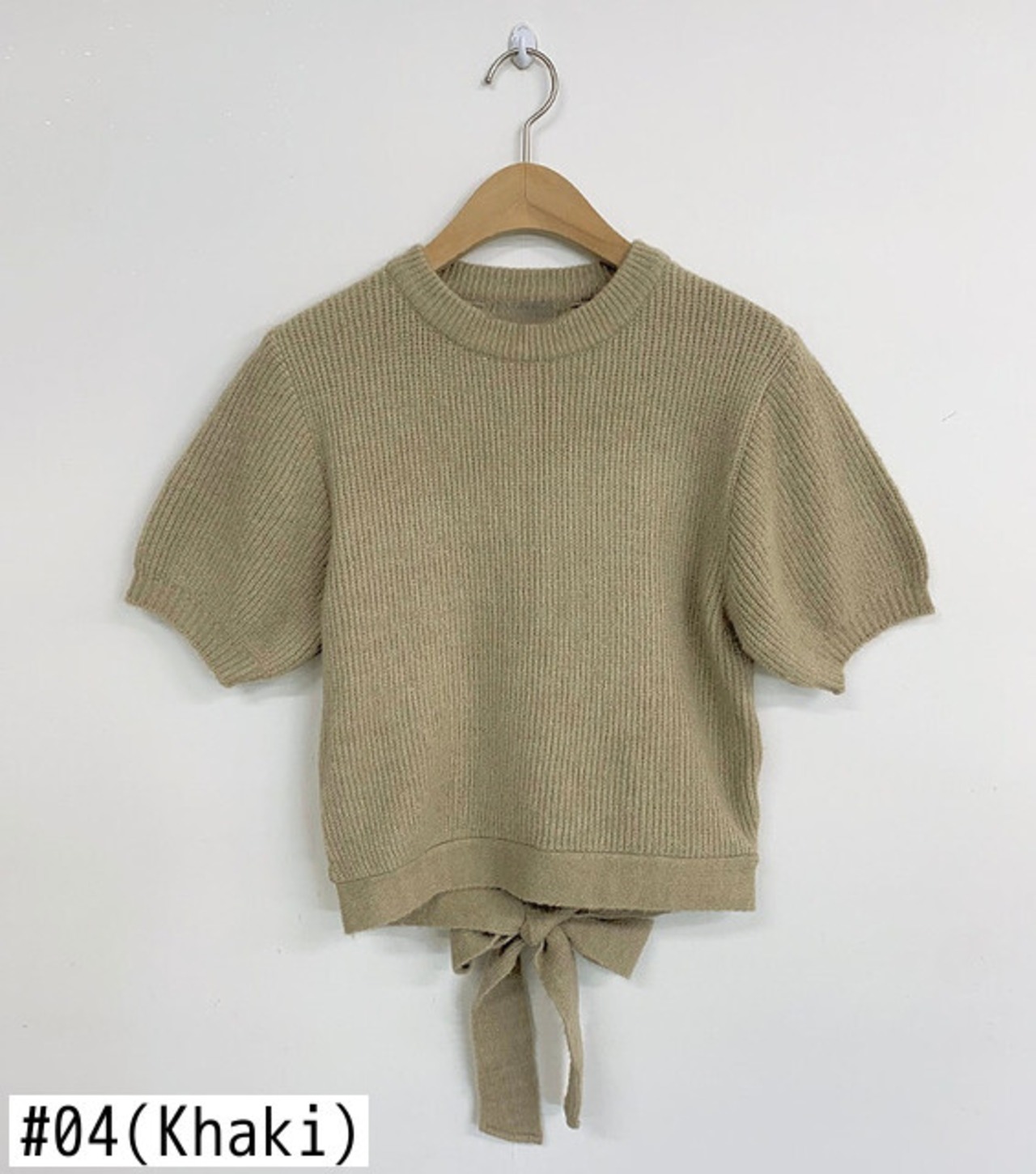 Nomikuma 弓包帯スリムウエストショートニットトップ女性シックな夏のパフスリーブ O ネックプルオーバーセーター 2022 リボン サマー 夏物 Oネック kor47130747315