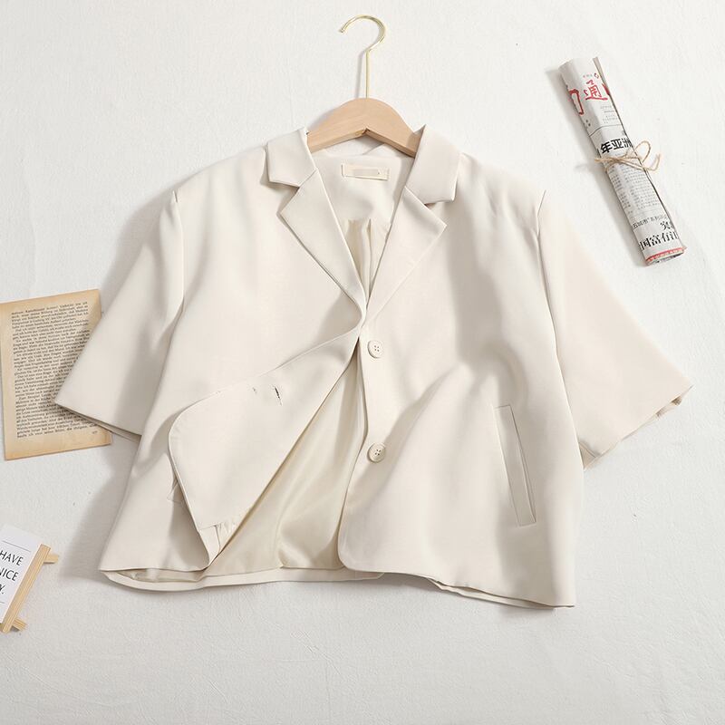 Nomikuma 2022 夏 ショート カーディガン トップス カジュアル ターンダウンカラー 袖付き スーツ ジャケット 無地 ブレザー コート サマー 夏物 ソリッドカラー kor78934428545