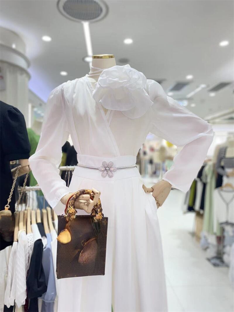 Nomikuma ブラウス女性シックな 3D 花 V ネックホルター長袖シフォンシャツ秋デ 2022 ロング オータム 秋物 Vネック フラワーデザイン kor61251959518