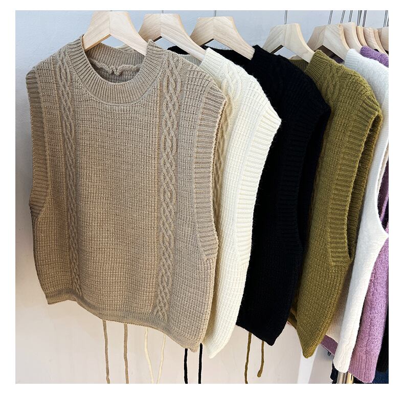Nomikuma レースアップ プルオーバー ニットベスト 2022 秋 因果 無地 ニットウェア セーターベスト レディース オータム 秋物 ソリッドカラー kor70224204856