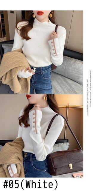 Nomikuma ニットベーシックトップス女性 2022 秋冬タートルネックセーターシックなボタンスリムストレッチニット オータム 秋物 ウィンター 冬物 kor26566863633