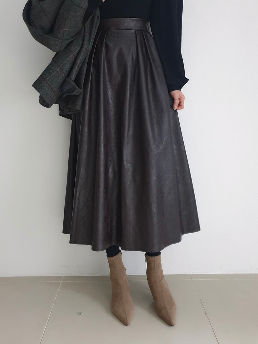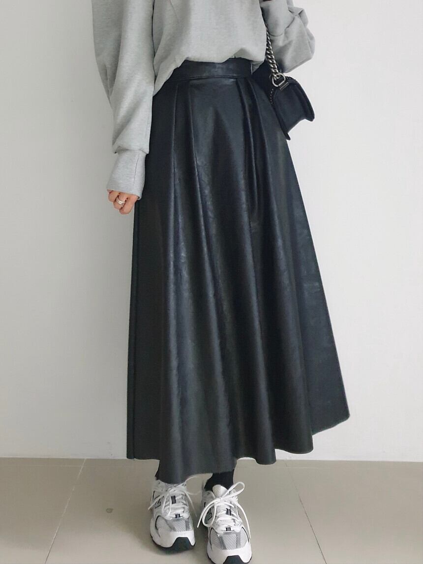 Nomikuma シックな秋冬 PU レザースカートの女性のウエスト A ラインスカート 2022 ボトムスファルダ オータム 秋物 ウィンター 冬物 Aライン kor44358458088