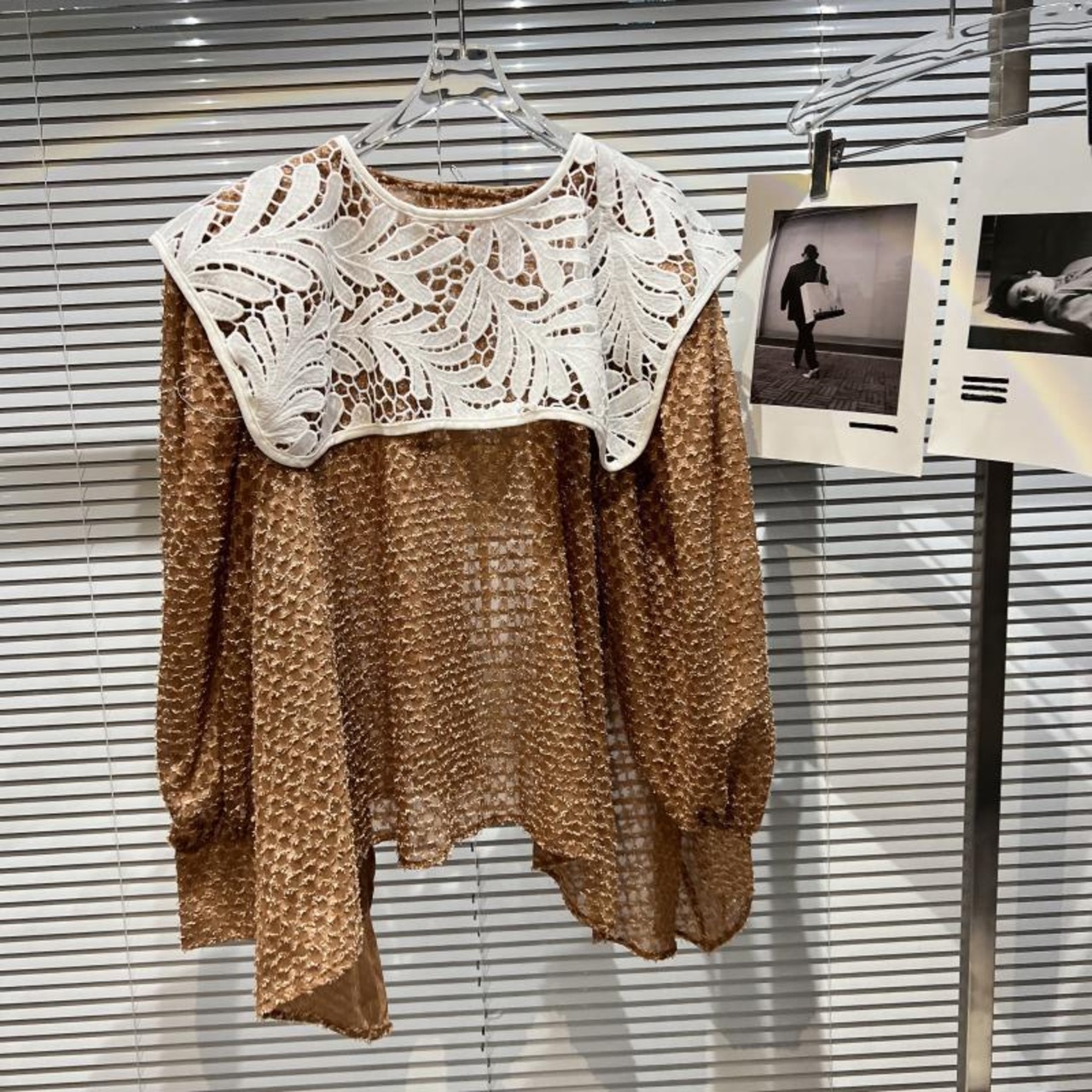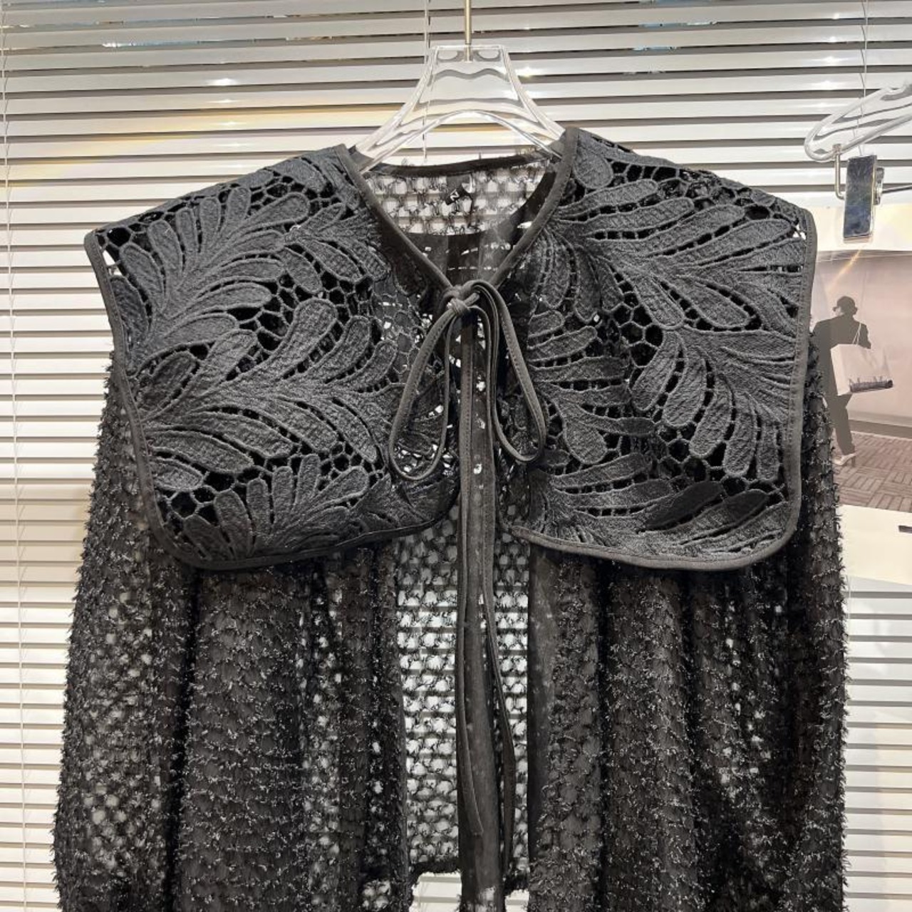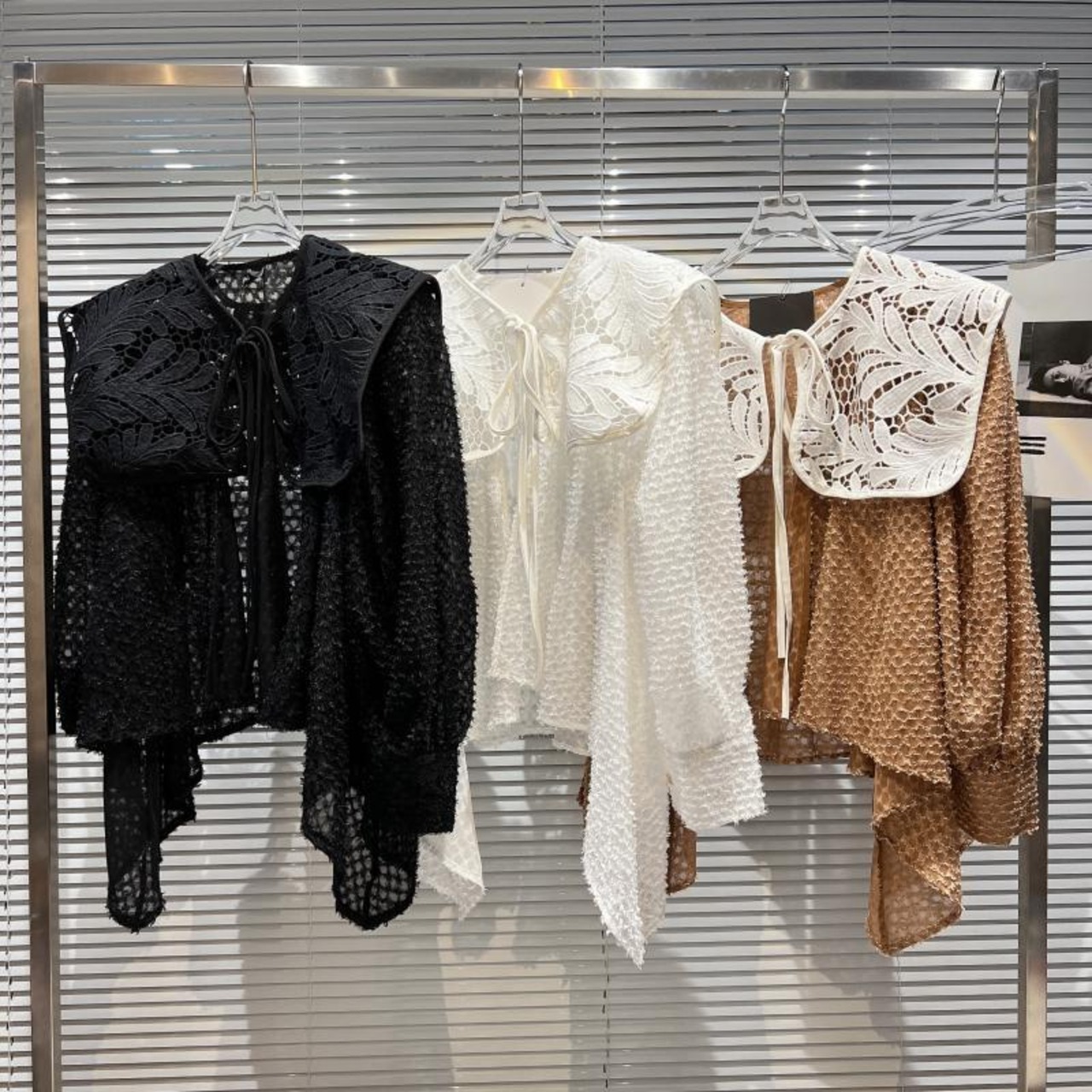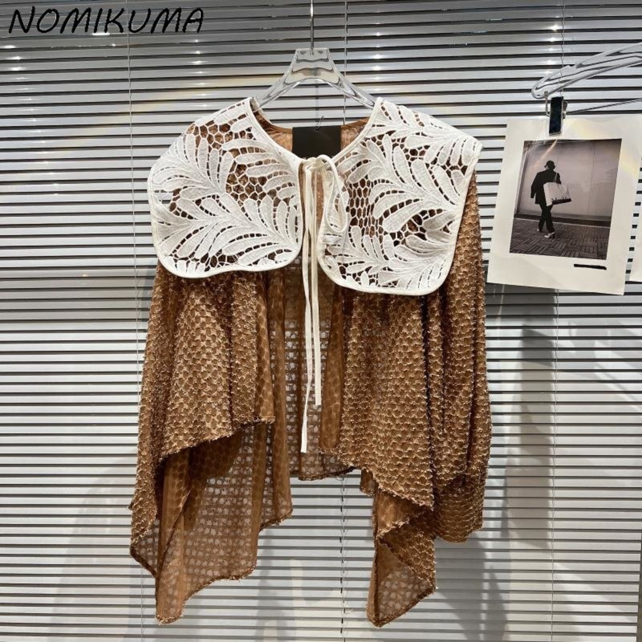 Nomikuma 2022 秋ブラウス女性フックレースアップショール + 中空アウト長袖トップスシャツ女性二枚トップスセット ロング オータム 秋物 kor89751565688
