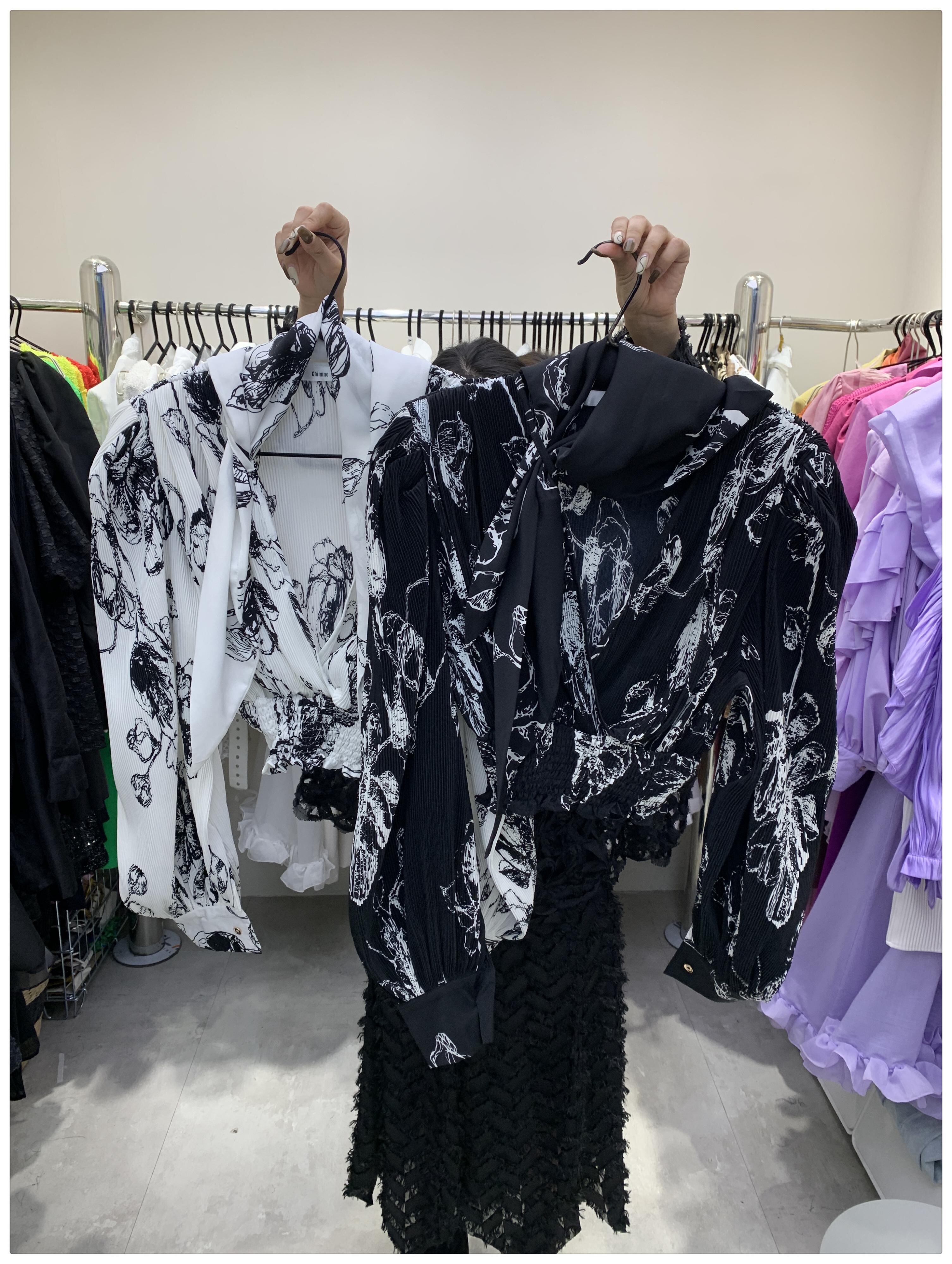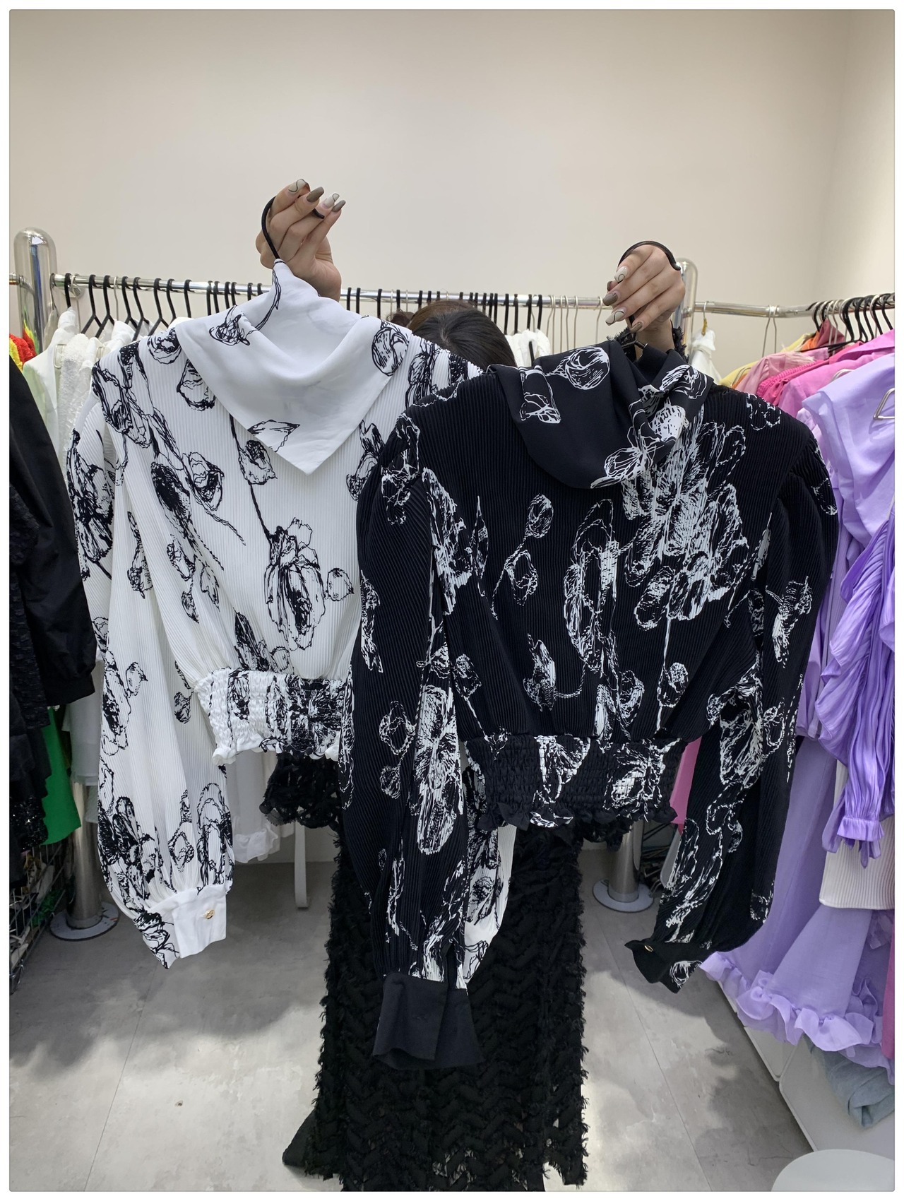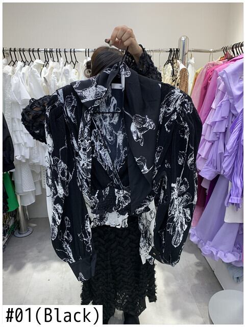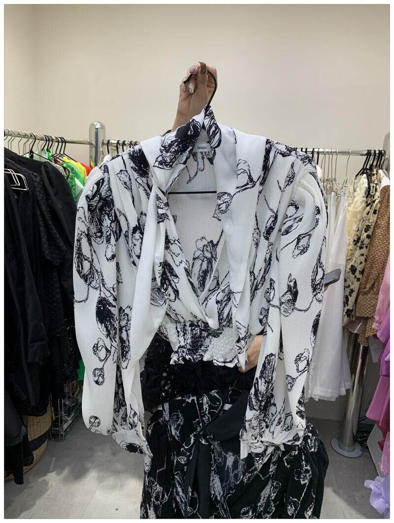 ノミクマプリント ブラウス 提灯袖 Vネック トップス シャツ 2022年秋 スリム ウエスト イレギュラー ランタンスリーブ オータム 秋物 kor50016435021