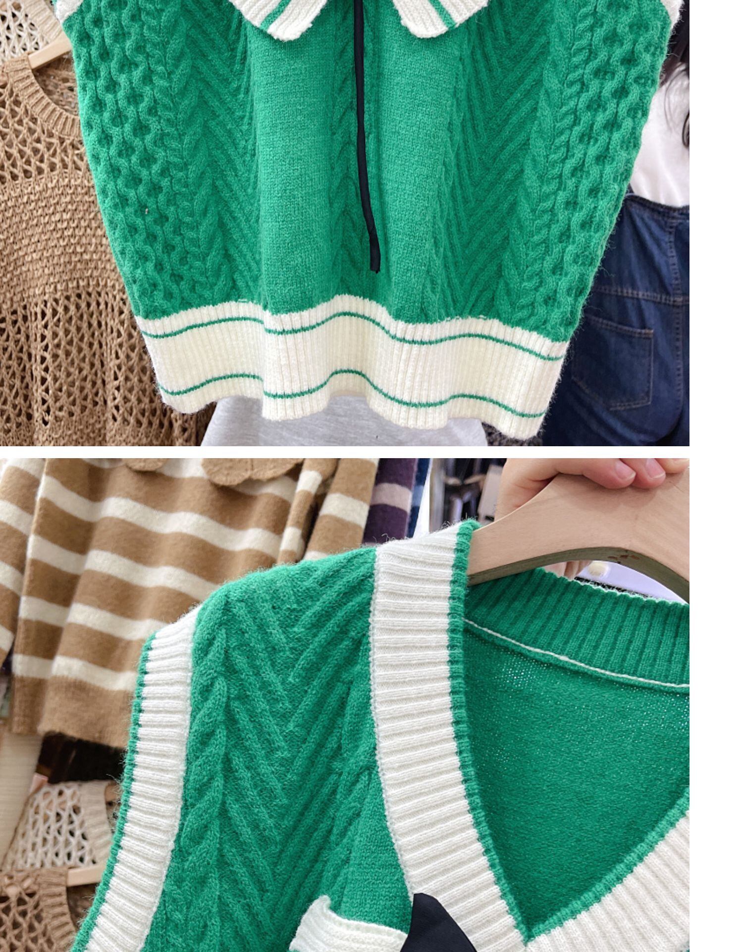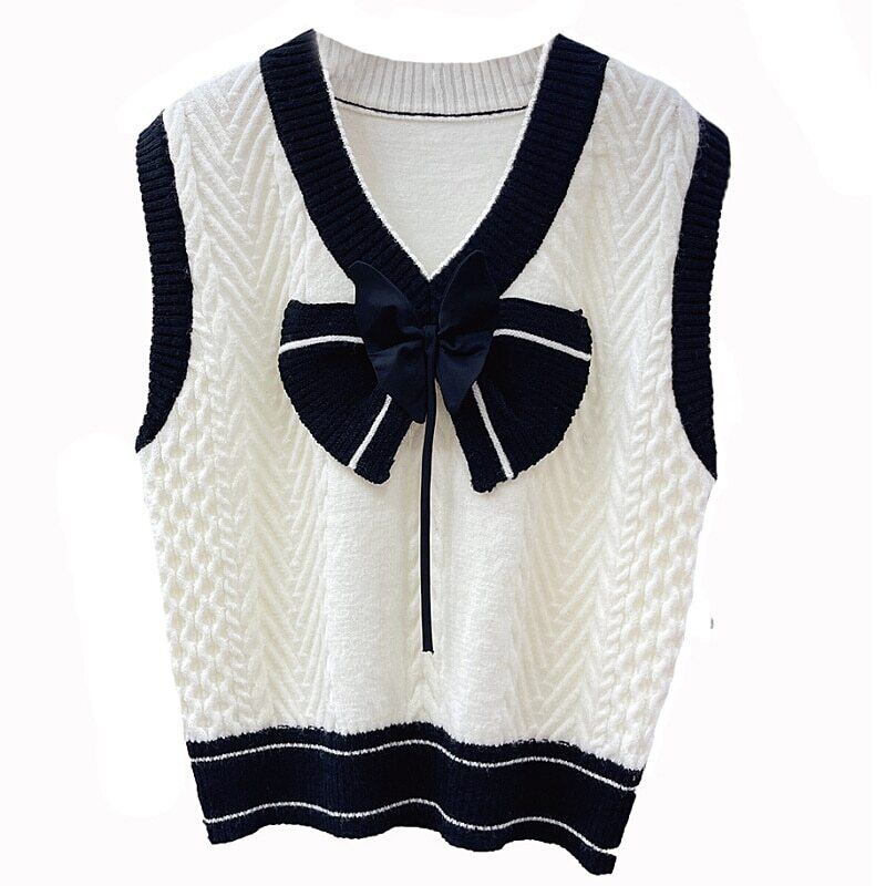Nomikuma 因果 V ネックヒットカラーニットベスト女性 2022 秋プルオーバーノースリーブチョッキ甘いちょう結びセーターベスト リボン 大人ガーリー スウィート キュート カジュアル オータム 秋物 Vネック kor81139900642