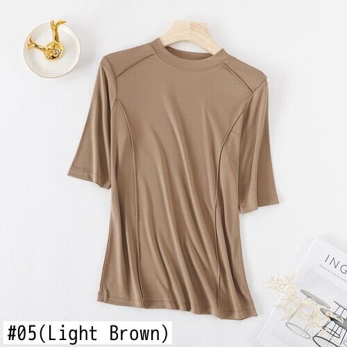 Nomikuma 2022 モーダルハーフタートルネックシャツ女性ハーフスリーブ無地グラフィック Tシャツ因果 Tシャツトップス 半袖 ソリッドカラー kor96246118337