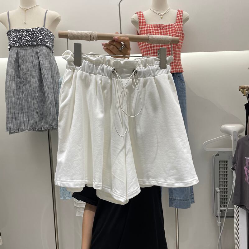 ノミクマ サマー カジュアル 半袖 Oネック レースアップ くり抜き Tシャツ トップス + ウエスト カジュアル ショーツ 2022年 2点セット ショート ハーフスリーブ 夏物 ブルマー kor32147802750
