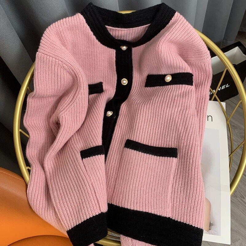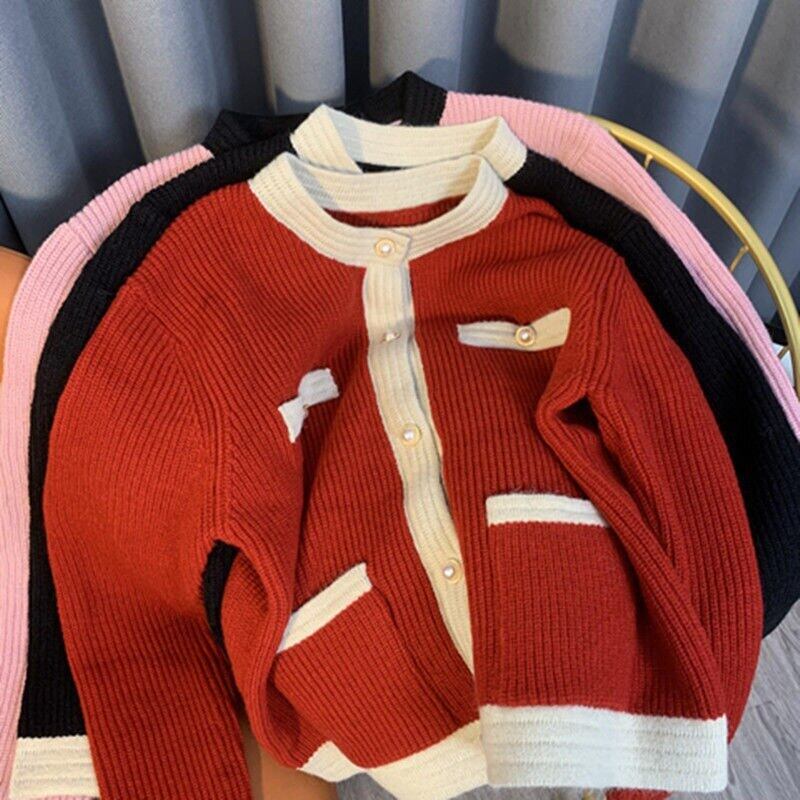 Nomikuma ヒットカラーセーターコート女性シングルブレスト O ネックニット 2022 秋の甘いニットカーディガンジャケット 大人ガーリー スウィート キュート カジュアル オータム 秋物 Oネック kor8077596550