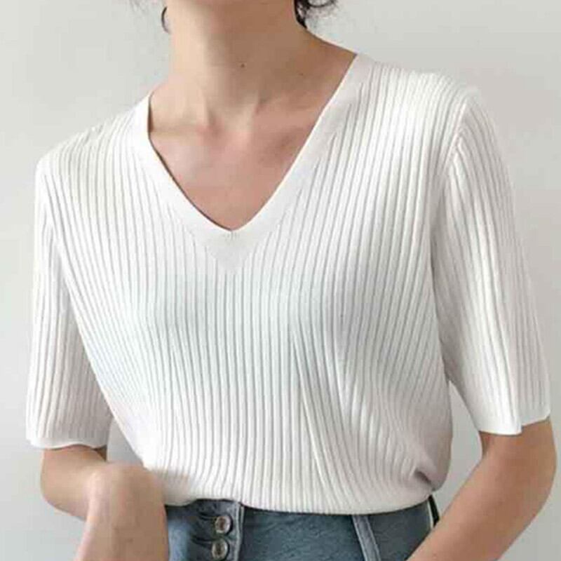 ノミクマ レディース 半袖 ニット 無地 因果 Vネック ニット トップス 2021 春夏 プルジャンパー 6E991 ショート ハーフスリーブ スプリング 春物 サマー 夏物 ソリッドカラー kor24267550718