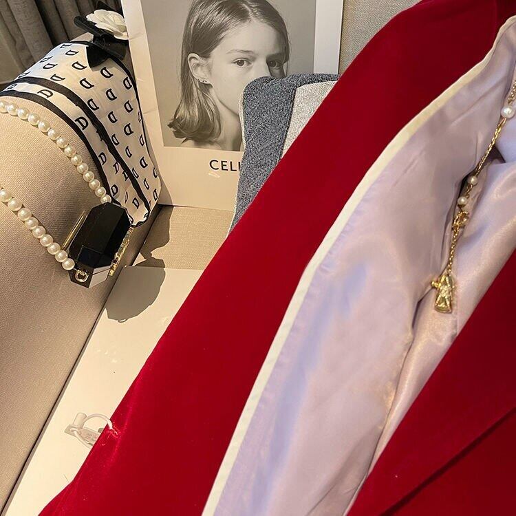 ノミクマ秋冬ベロア女ブレザーコート長袖ターンダウンカラーブレザージャケット ロング オータム 秋物 ウィンター 冬物 kor2680128561