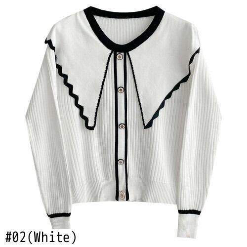 Nomikuma スウィート フリル ヒットカラー Oネック プルオーバー ニット 2022年 秋 シングルブレスト セーター カジュアル 長袖 ニットトップス ロング 大人ガーリー キュート オータム 秋物 kor15119073693